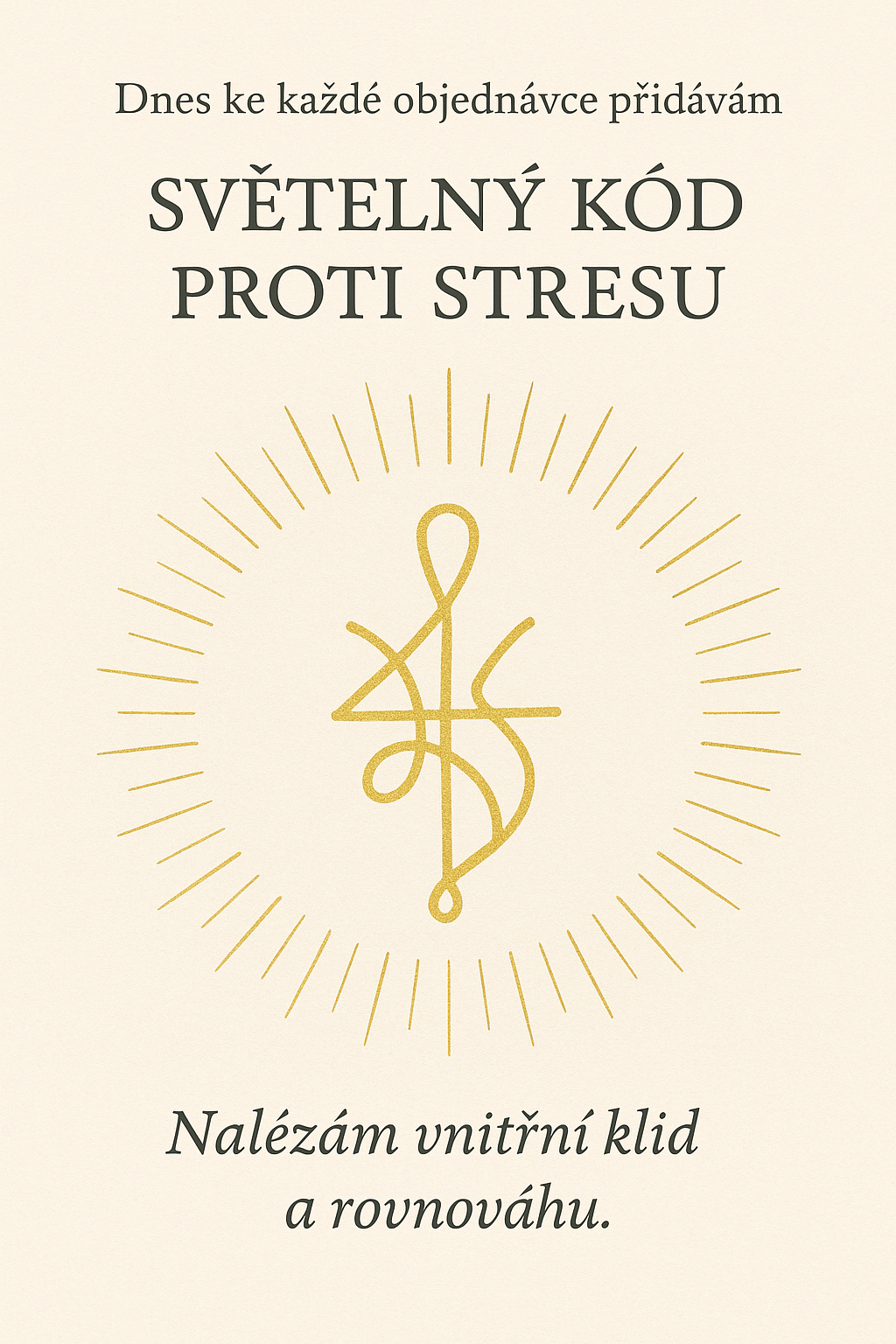 „Dnes ke každé objednávce přidávám osobní světelný kód proti stresu – symbol klidu a rovnováhy, který ti pomůže zůstat ve svém středu, působí uzemňujícím a uklidňujícím dojmem, otevírá srdce a dech.