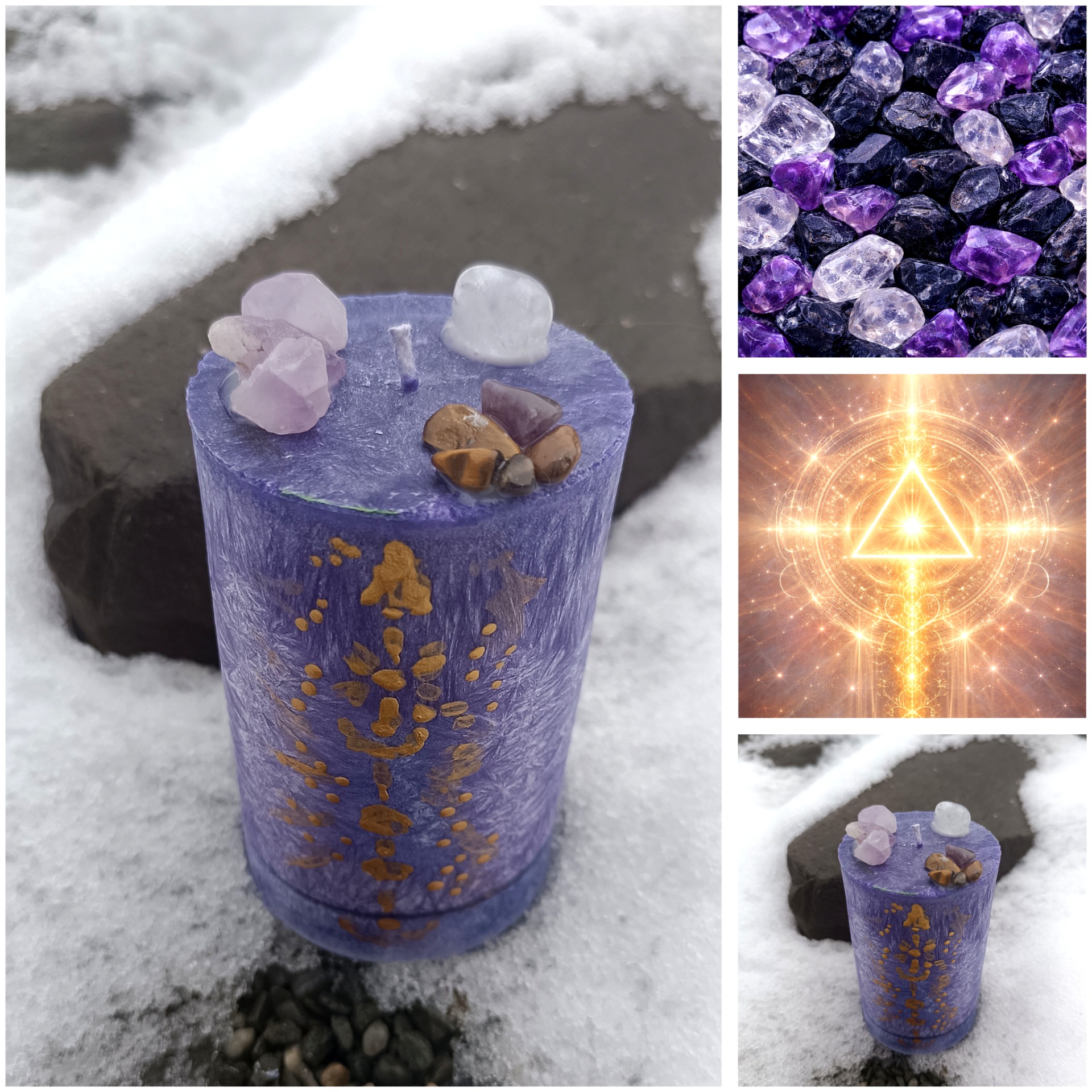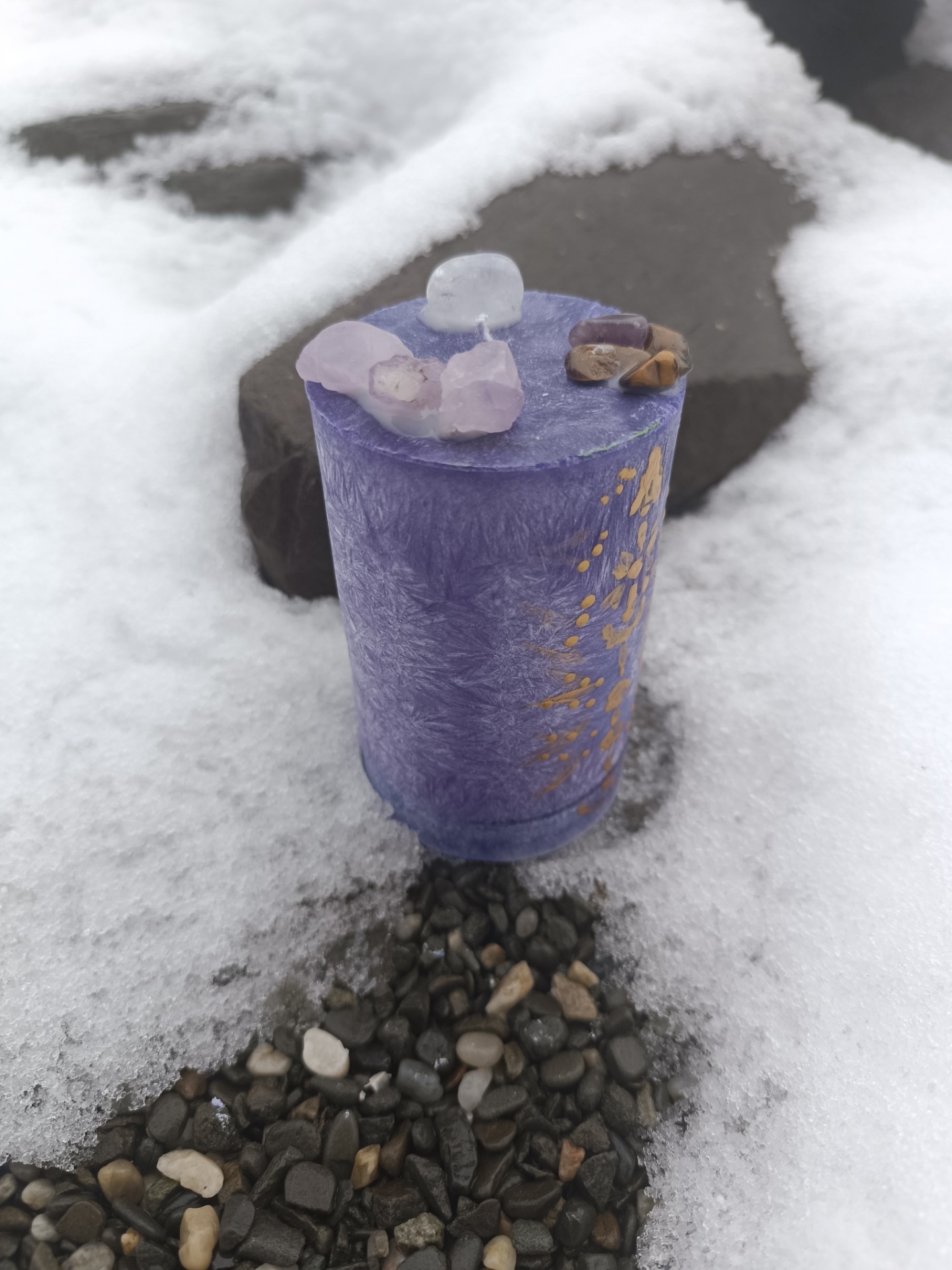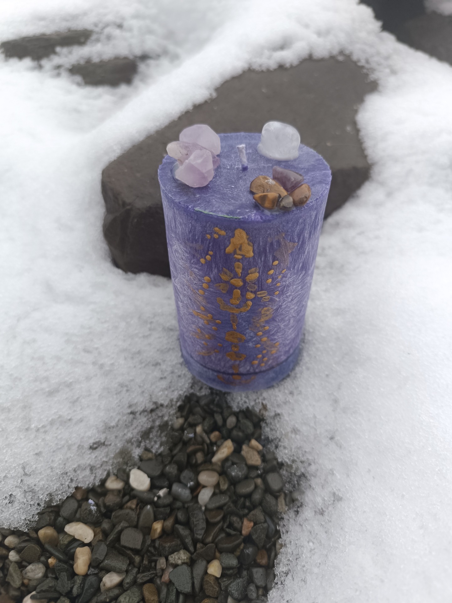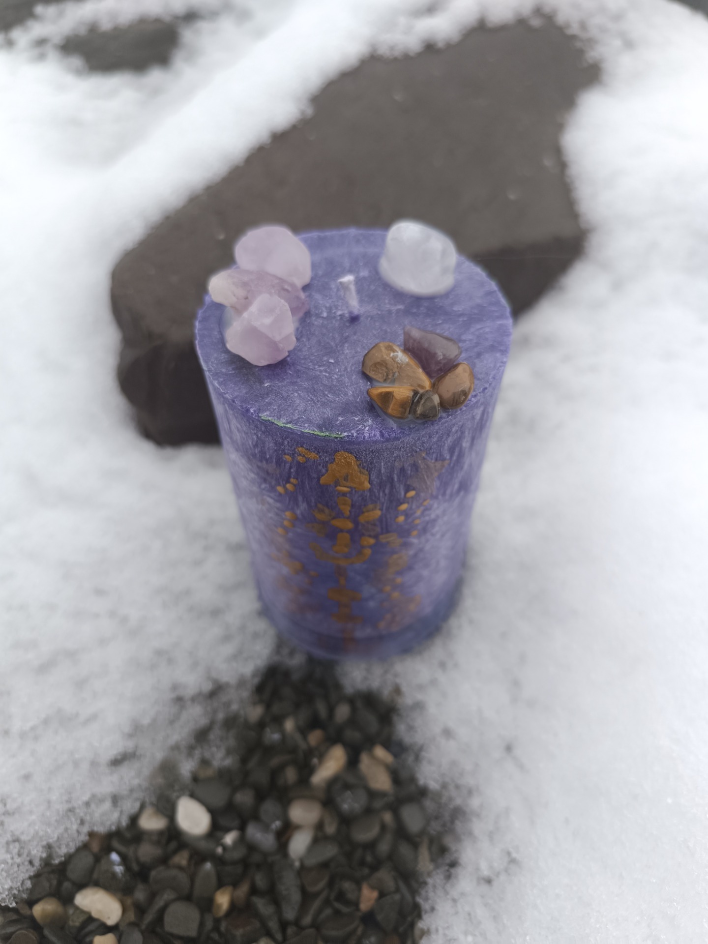 Šungit (uvnitř svíce) – silná ochrana a uzemnění.