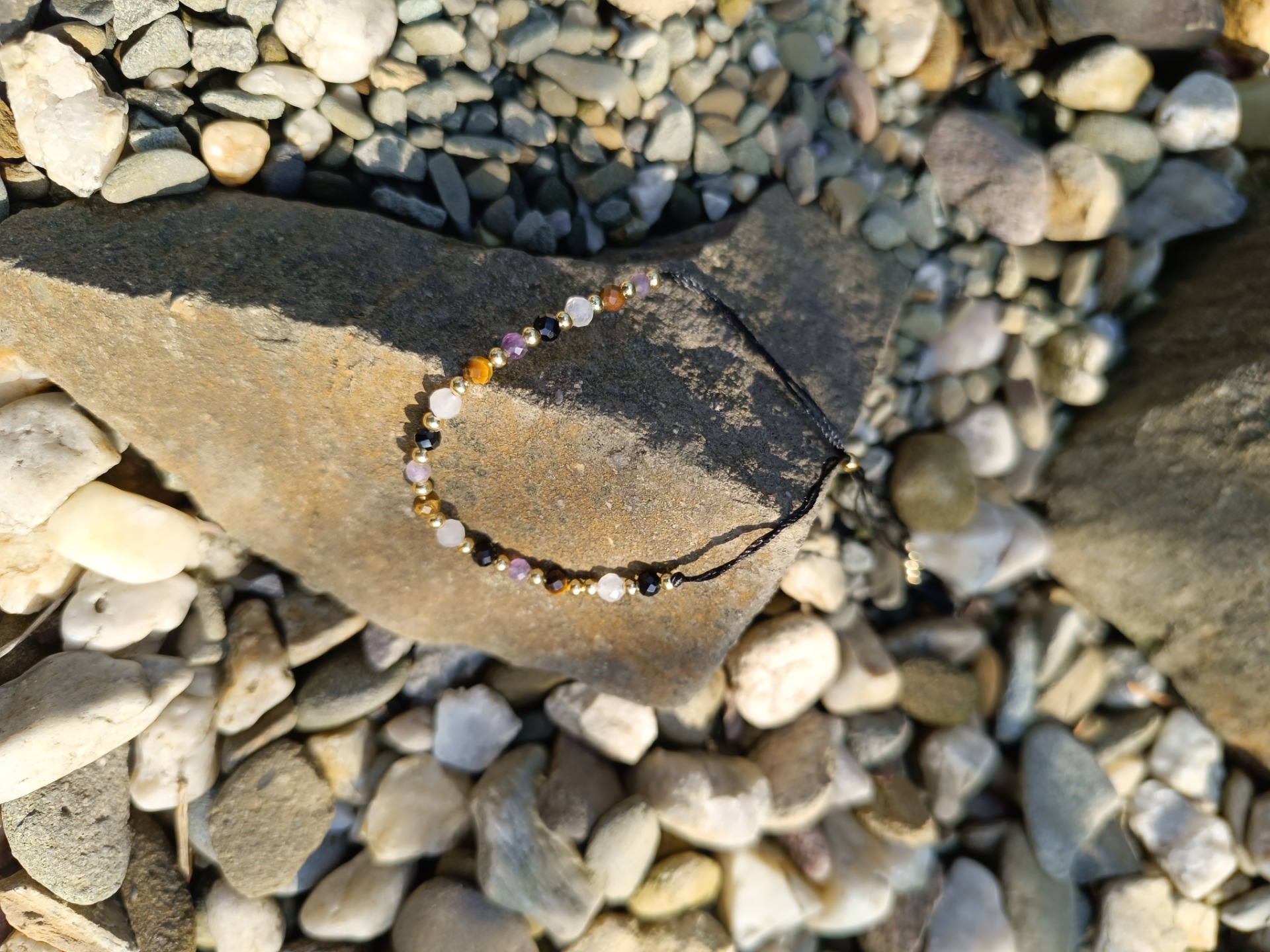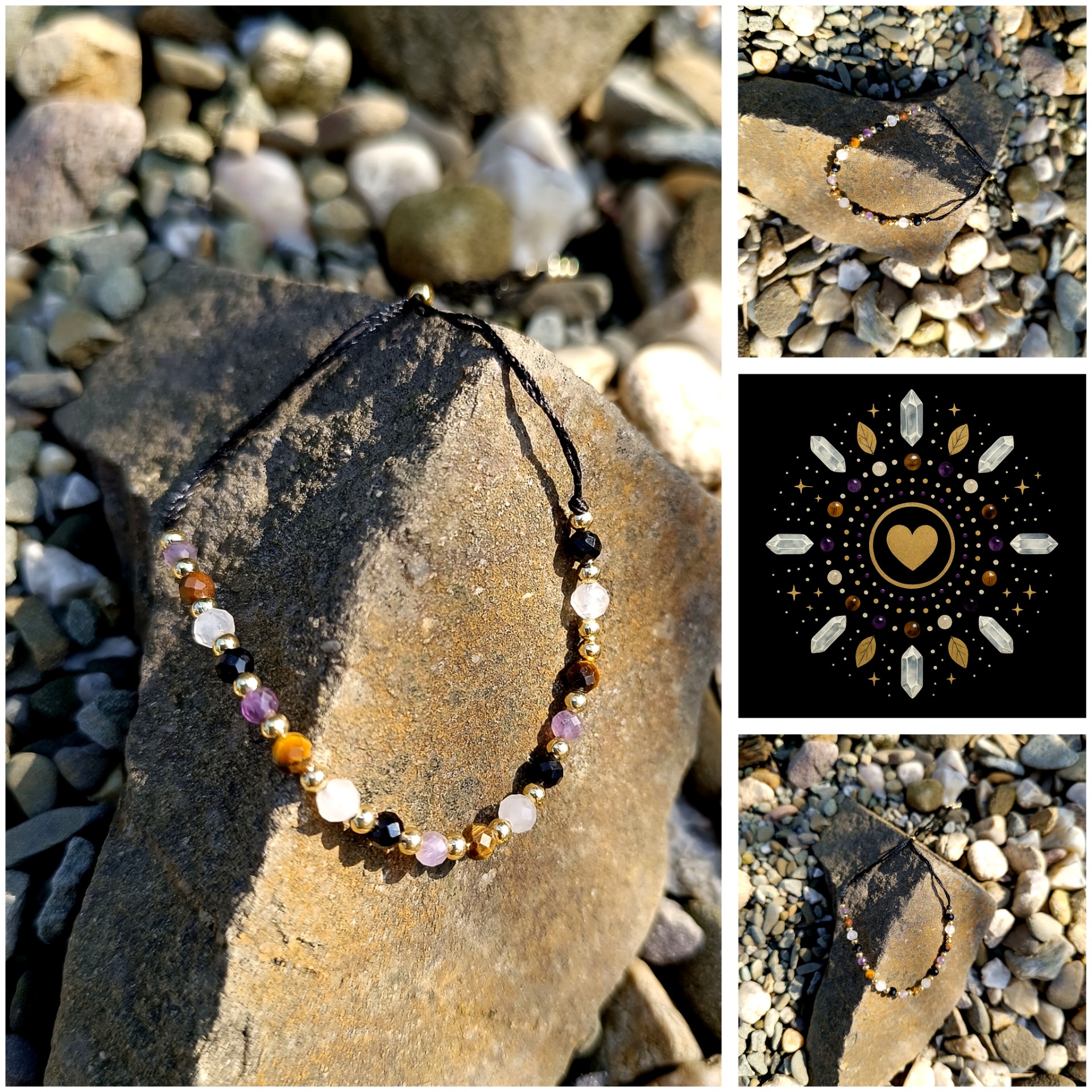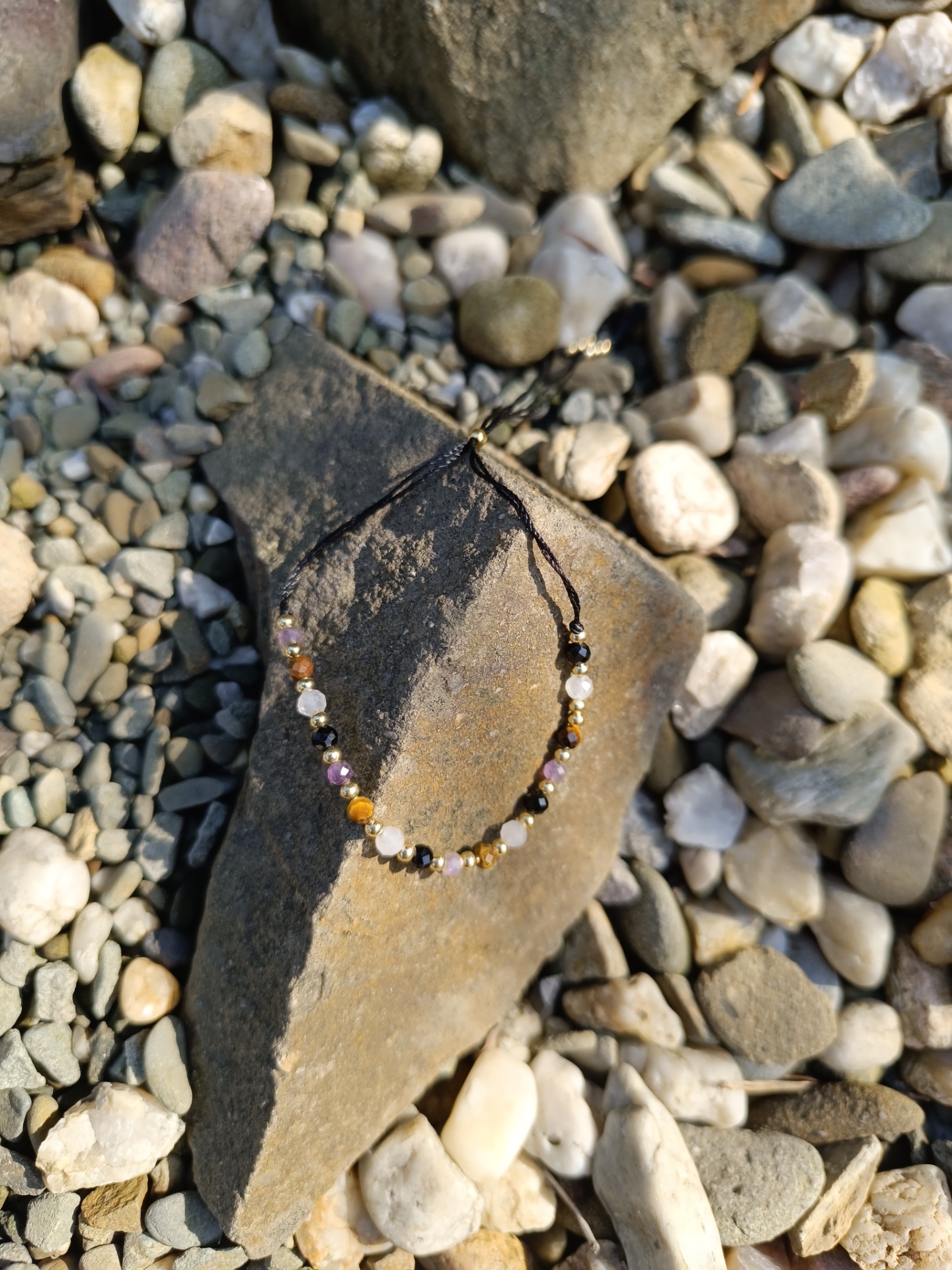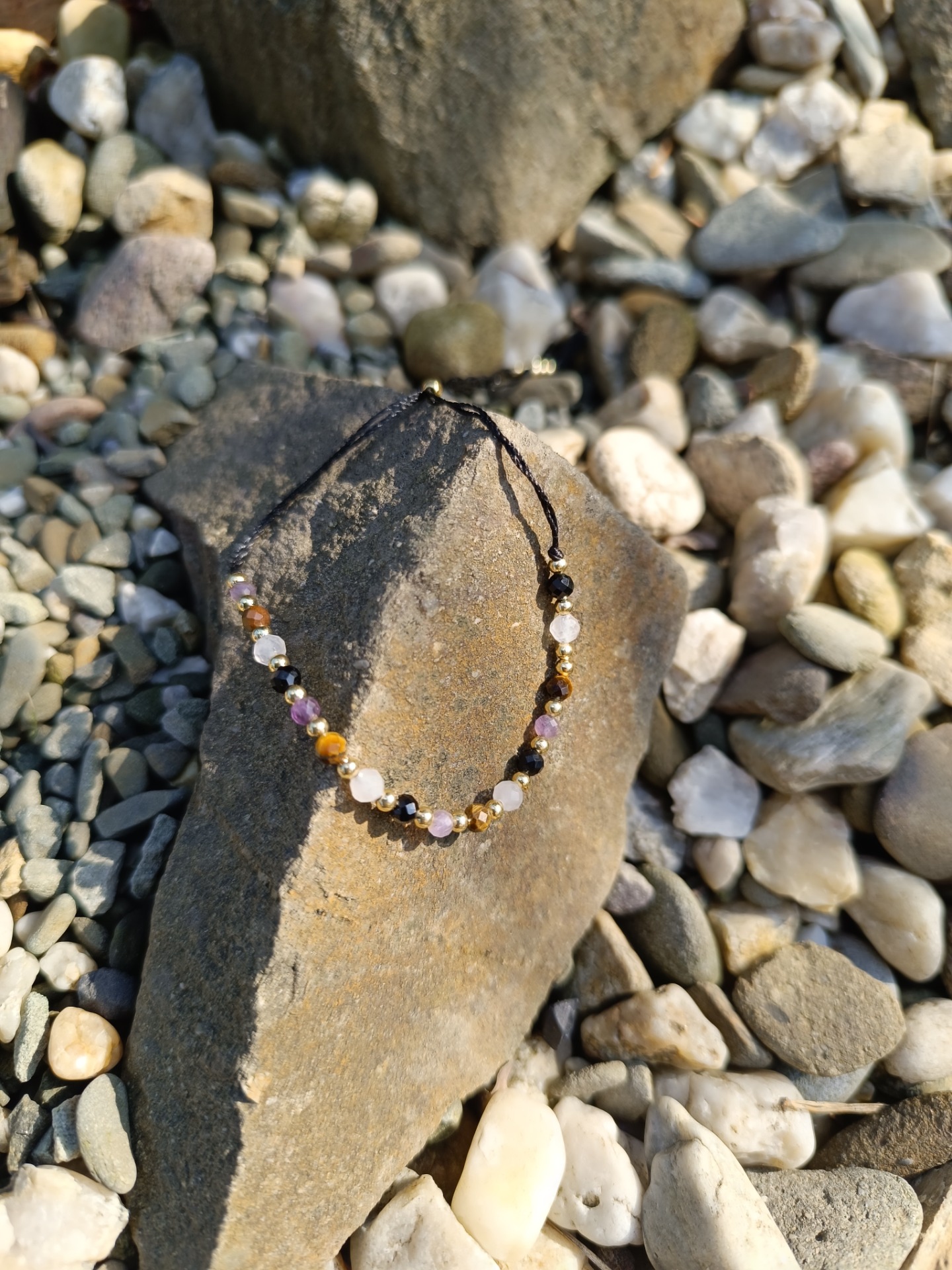 Ručně vyráběný náramek z přírodních minerálů, který v sobě spojuje ochrannou energii, vnitřní klid a posílení odvahy.
