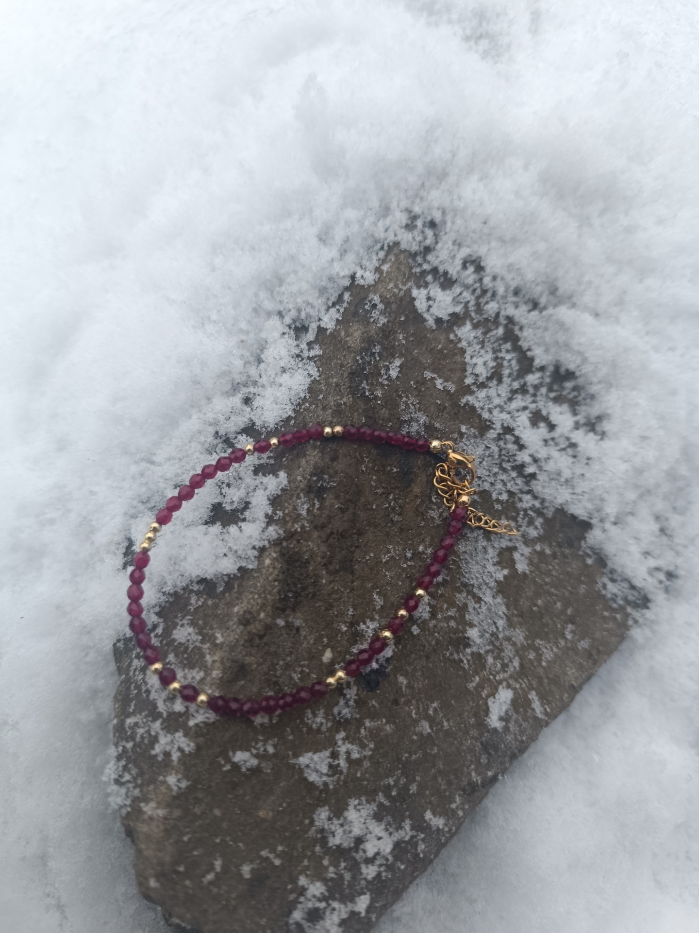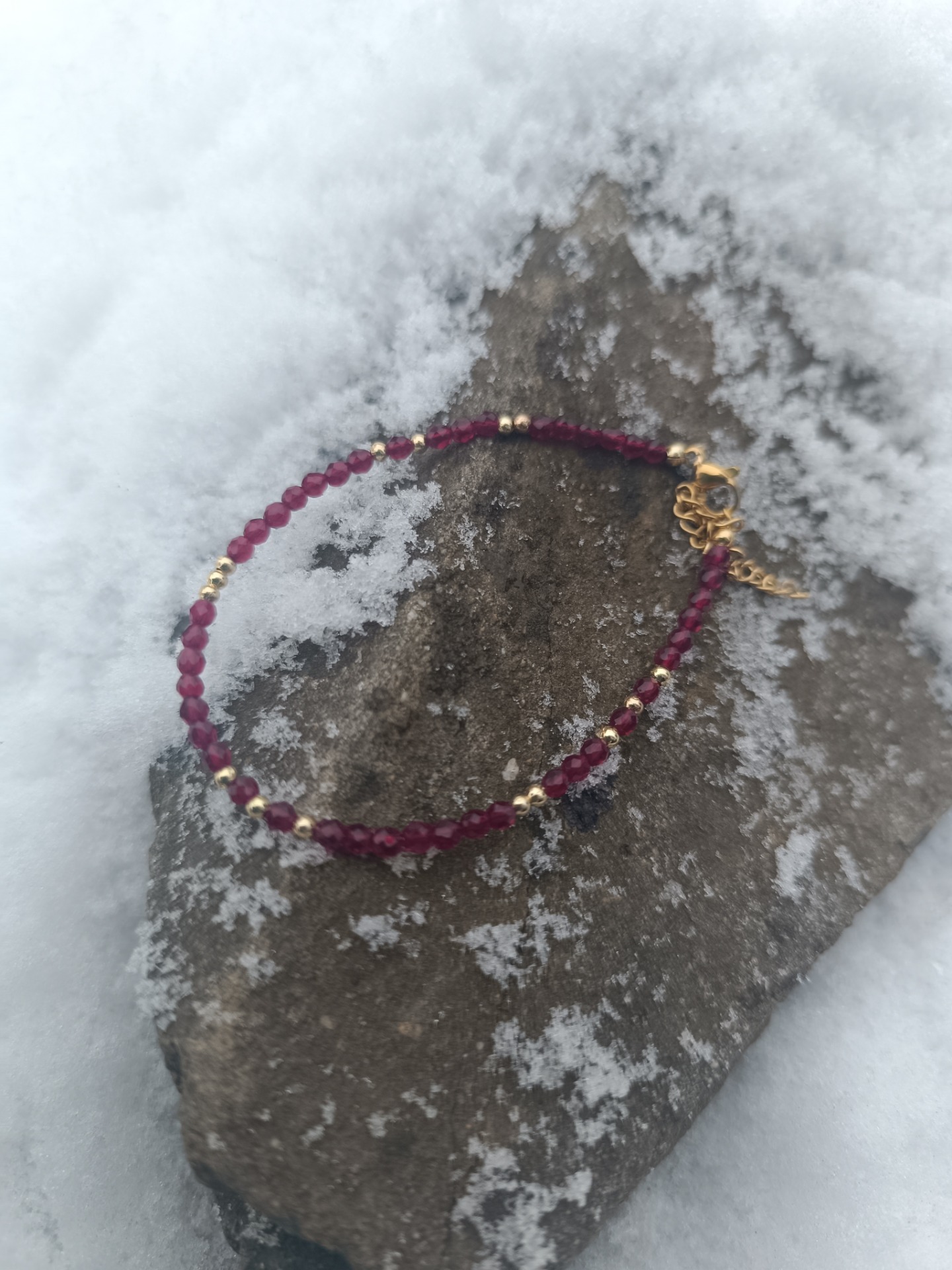 Jemný, ale velmi silný náramek z červeného granátu je symbolem životní síly, odvahy a ochrany.