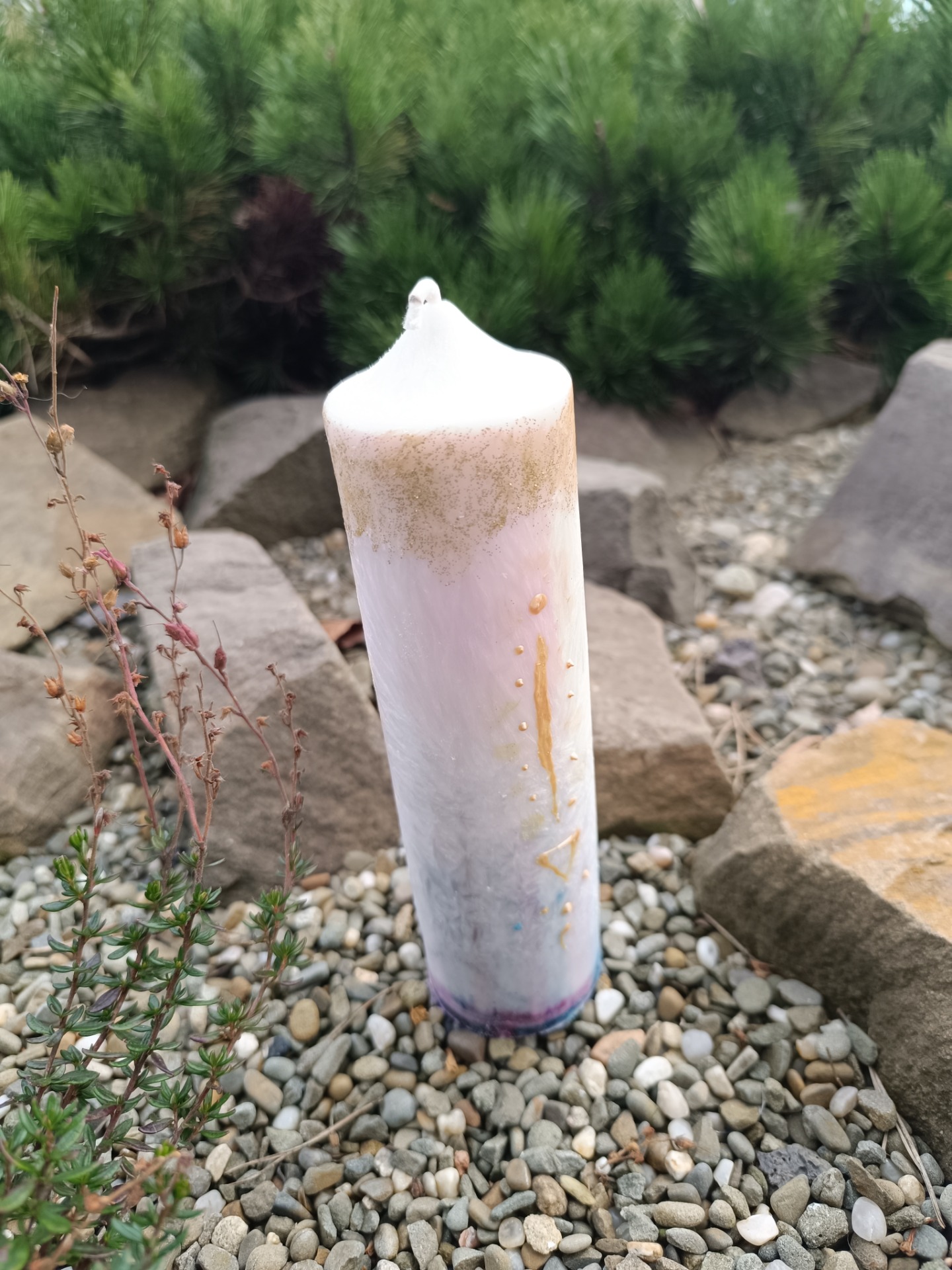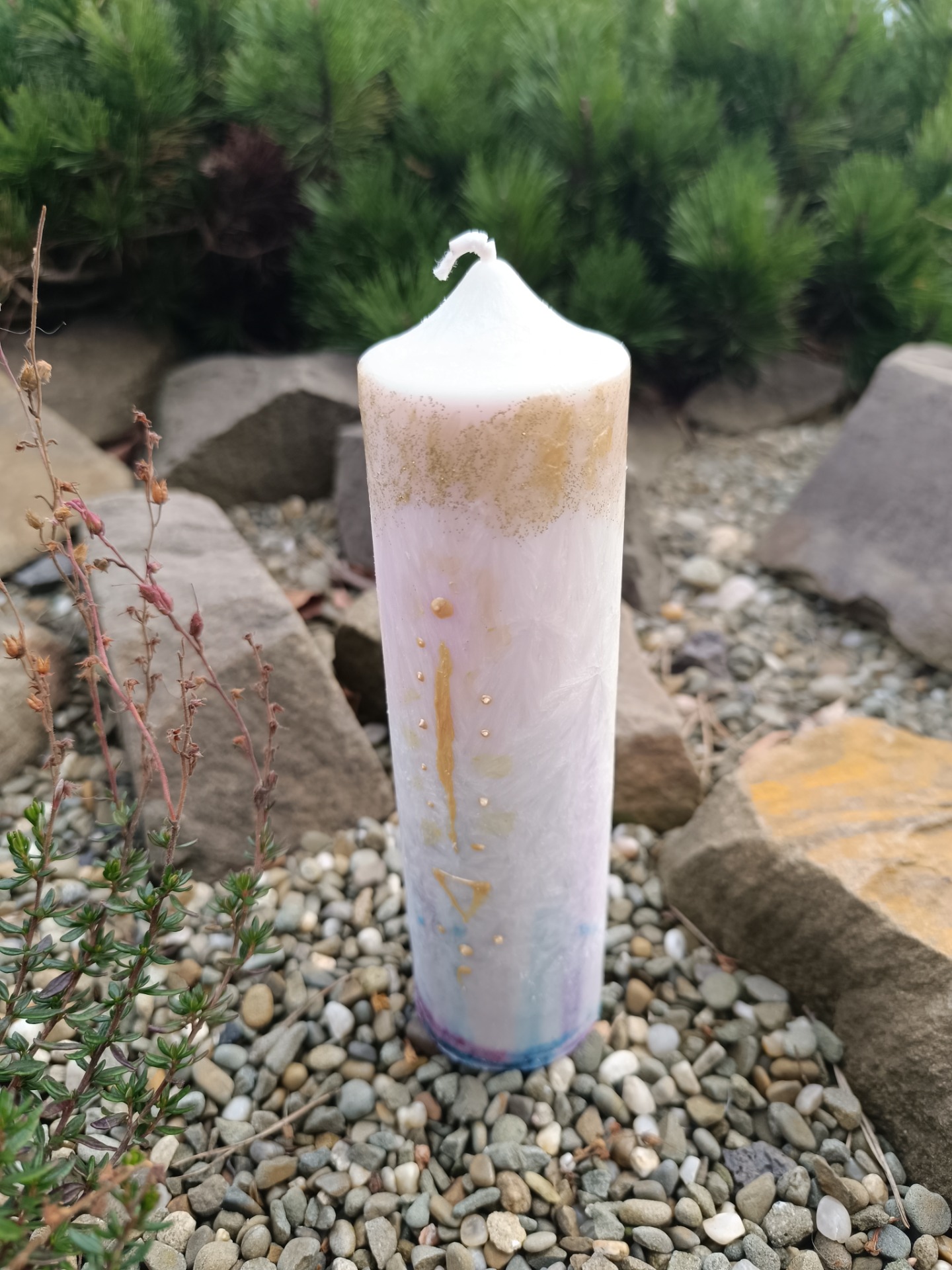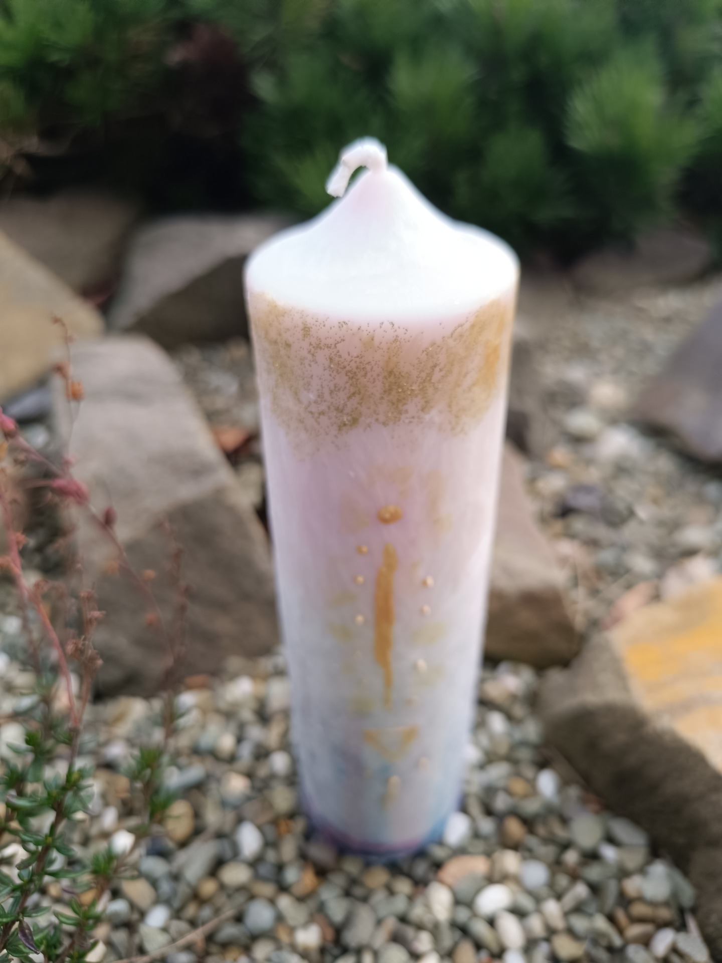 Tato svíce nese silné, ale klidné téma: otevřít cestu, odstranit bloky a zároveň chránit to, co už je tvoje.