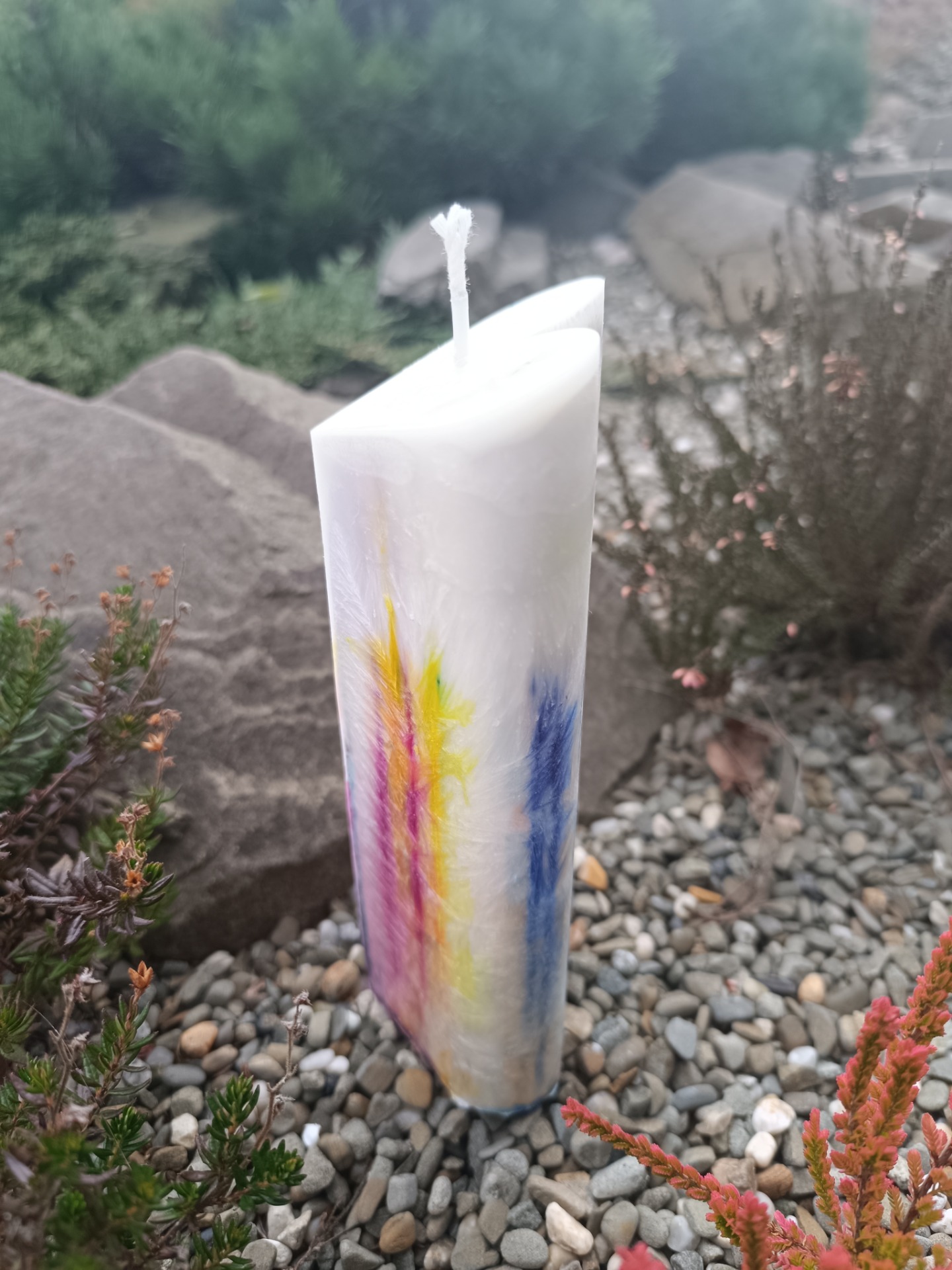 Duhová svíce vznikla v jemné andělské vibraci klidu a lehkosti.