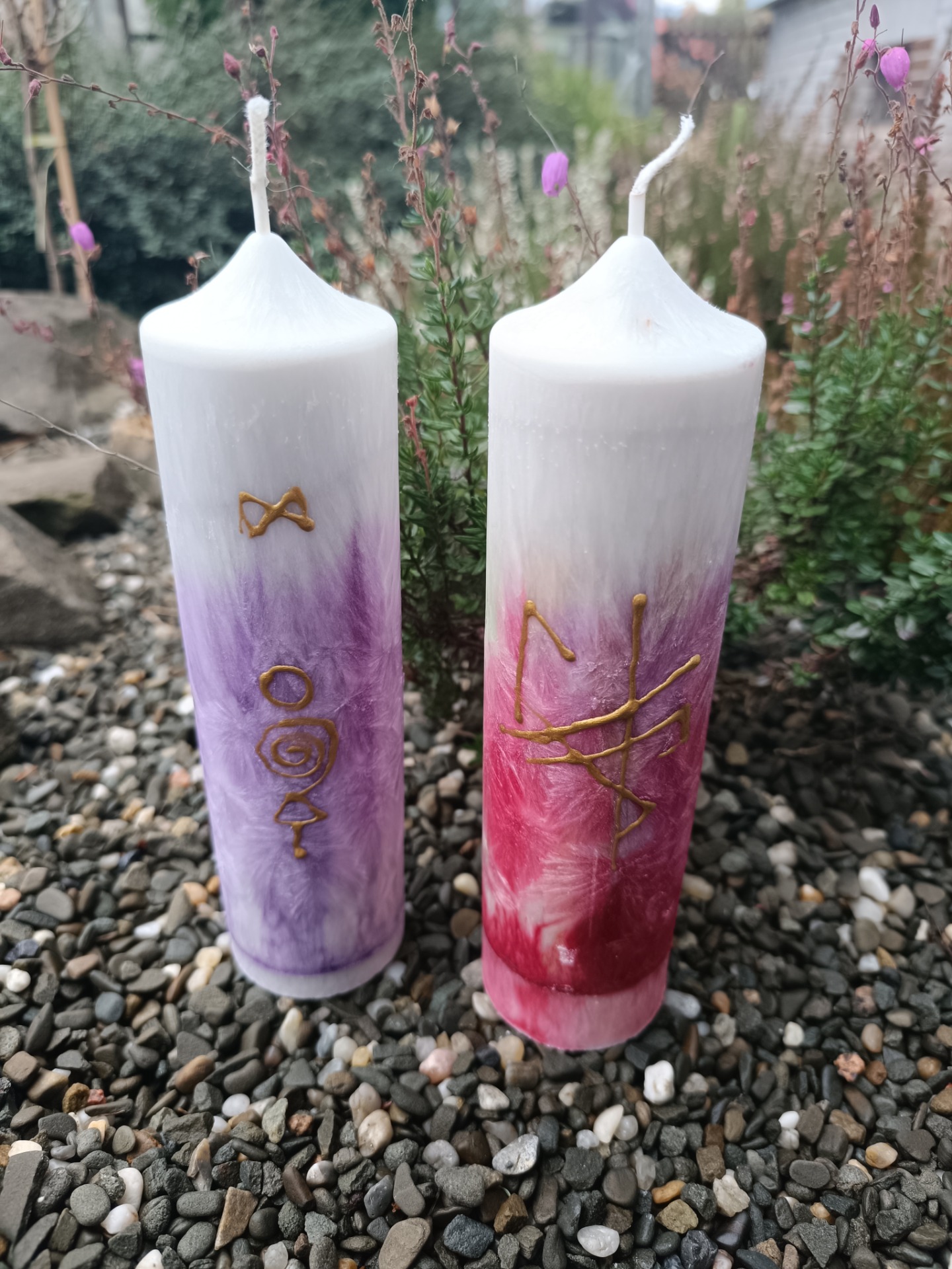 Na jedné svíci je vyobrazena mocná bindruna „Přání“, která spojuje runové síly přitažení, otevření cest a uskutečnění záměrů.