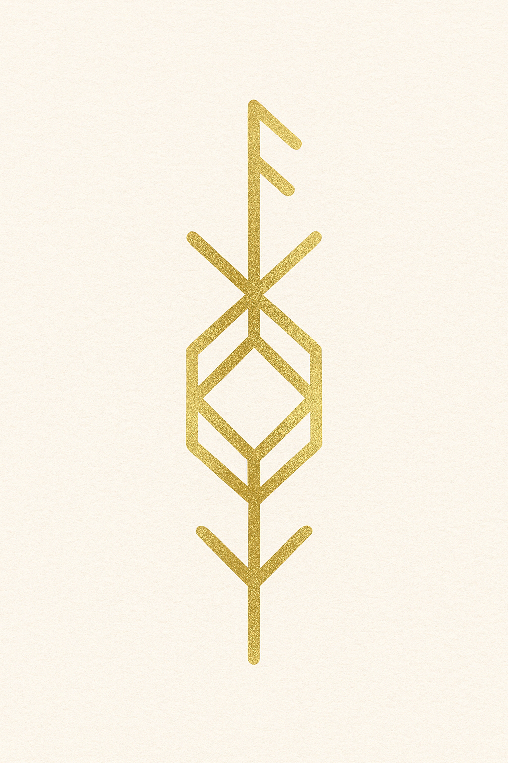 Zlatavá svíce s runovým symbolem hojnosti podporuje stabilitu, růst a finanční proud.
