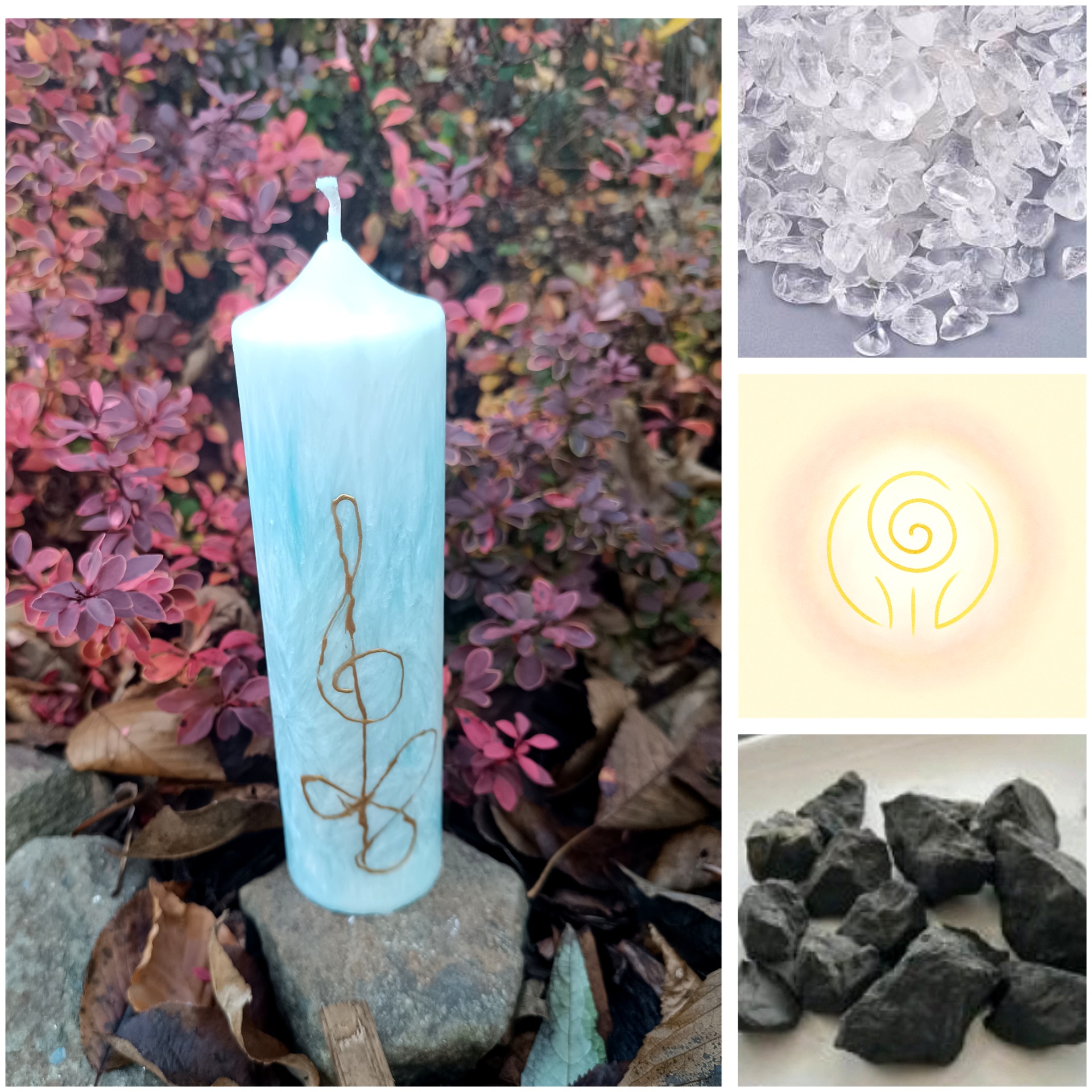 Světelný kód na svíci představuje osu klidu a proudění – propojuje tě s tichem, které přináší jasnost.