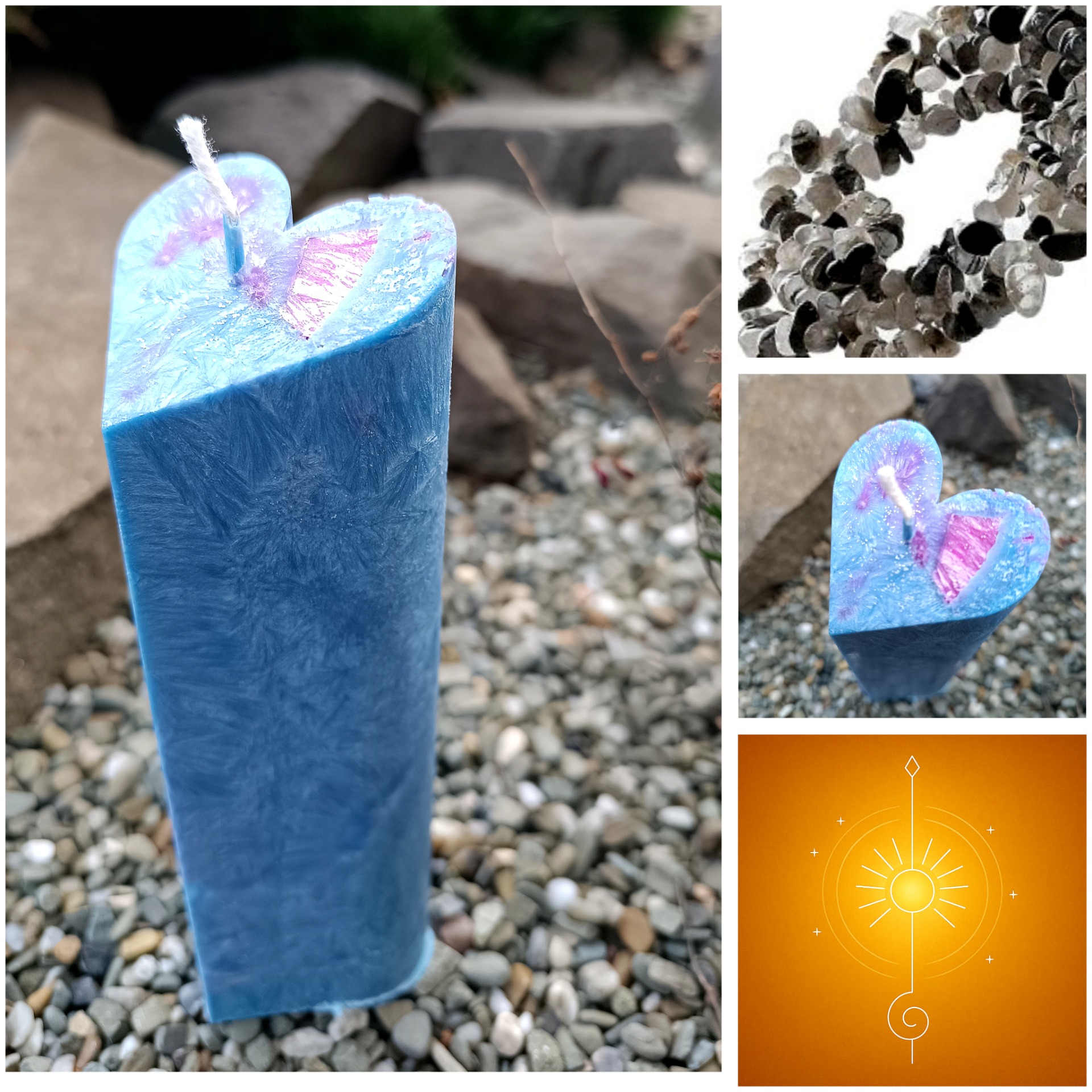 Tato modro-růžová svíce nese energii harmonie mezi citem a rozumem.