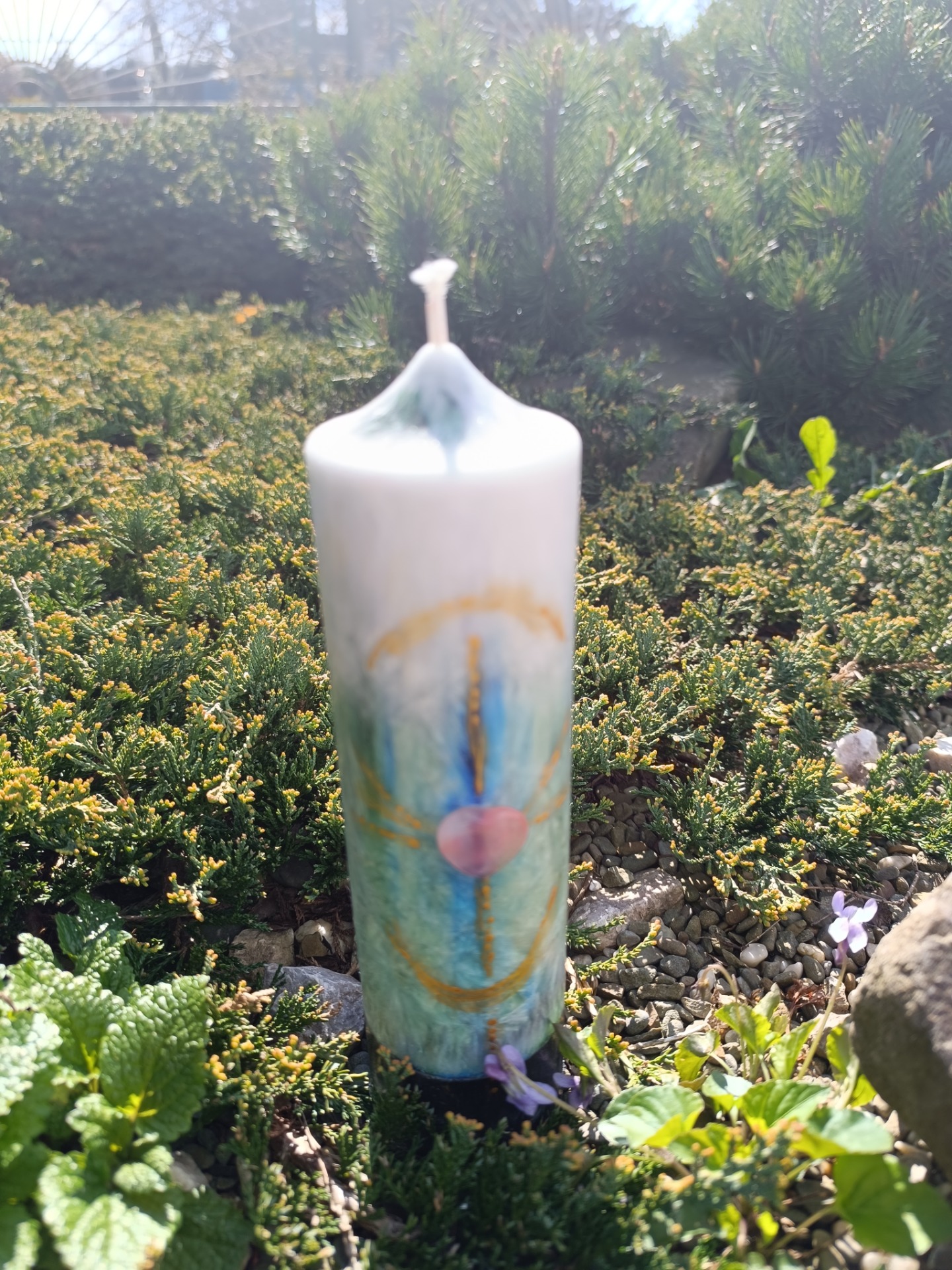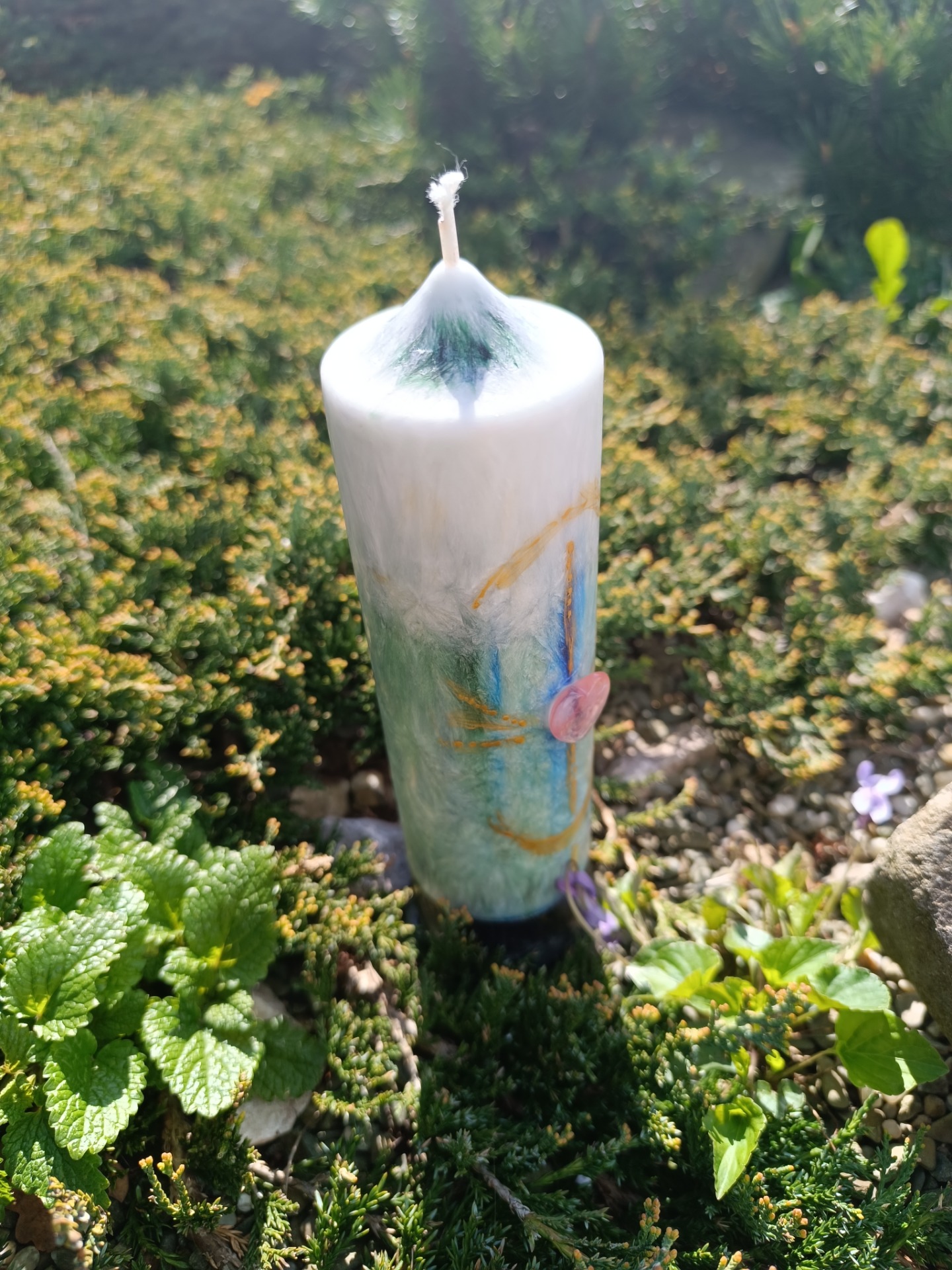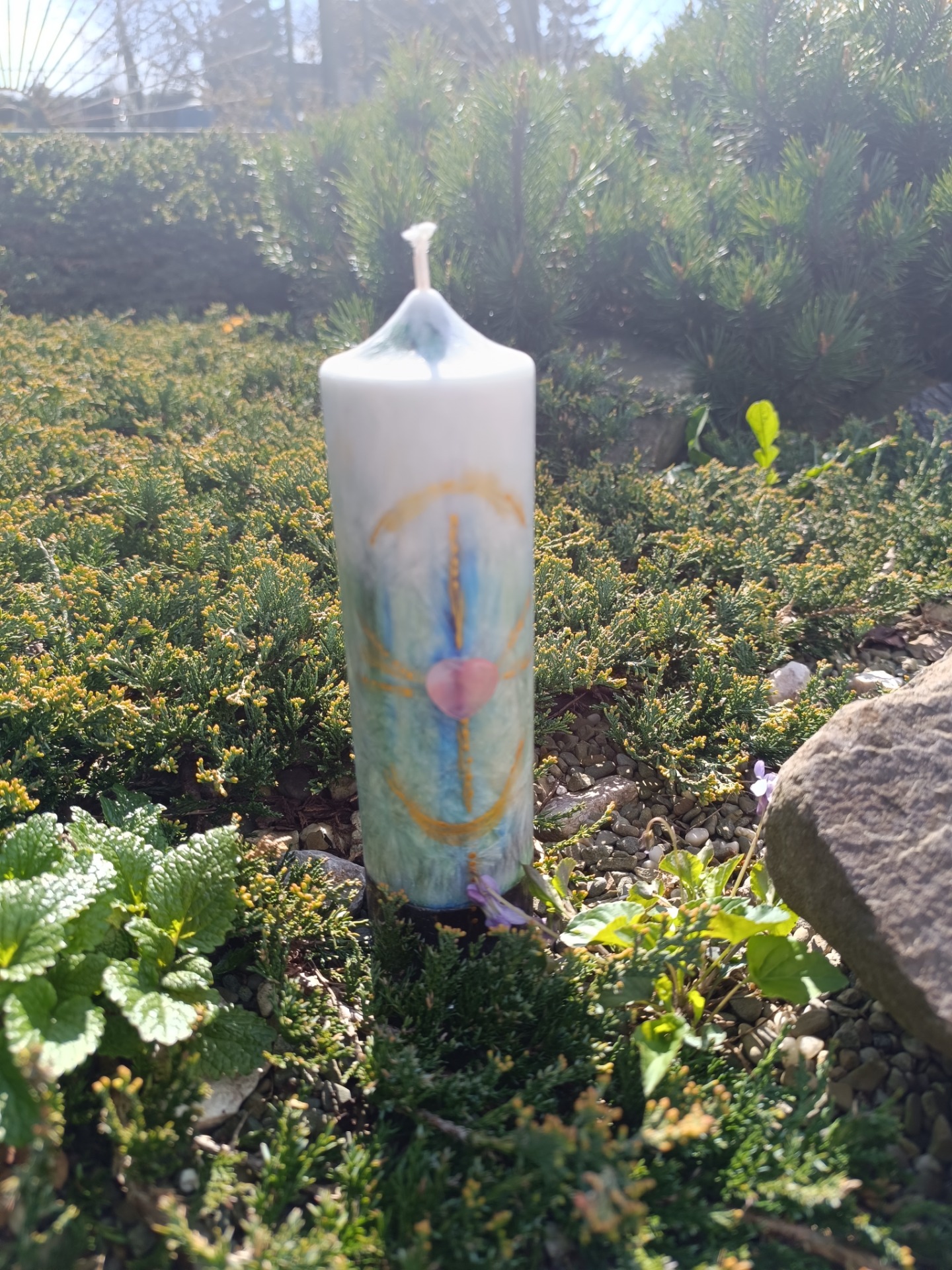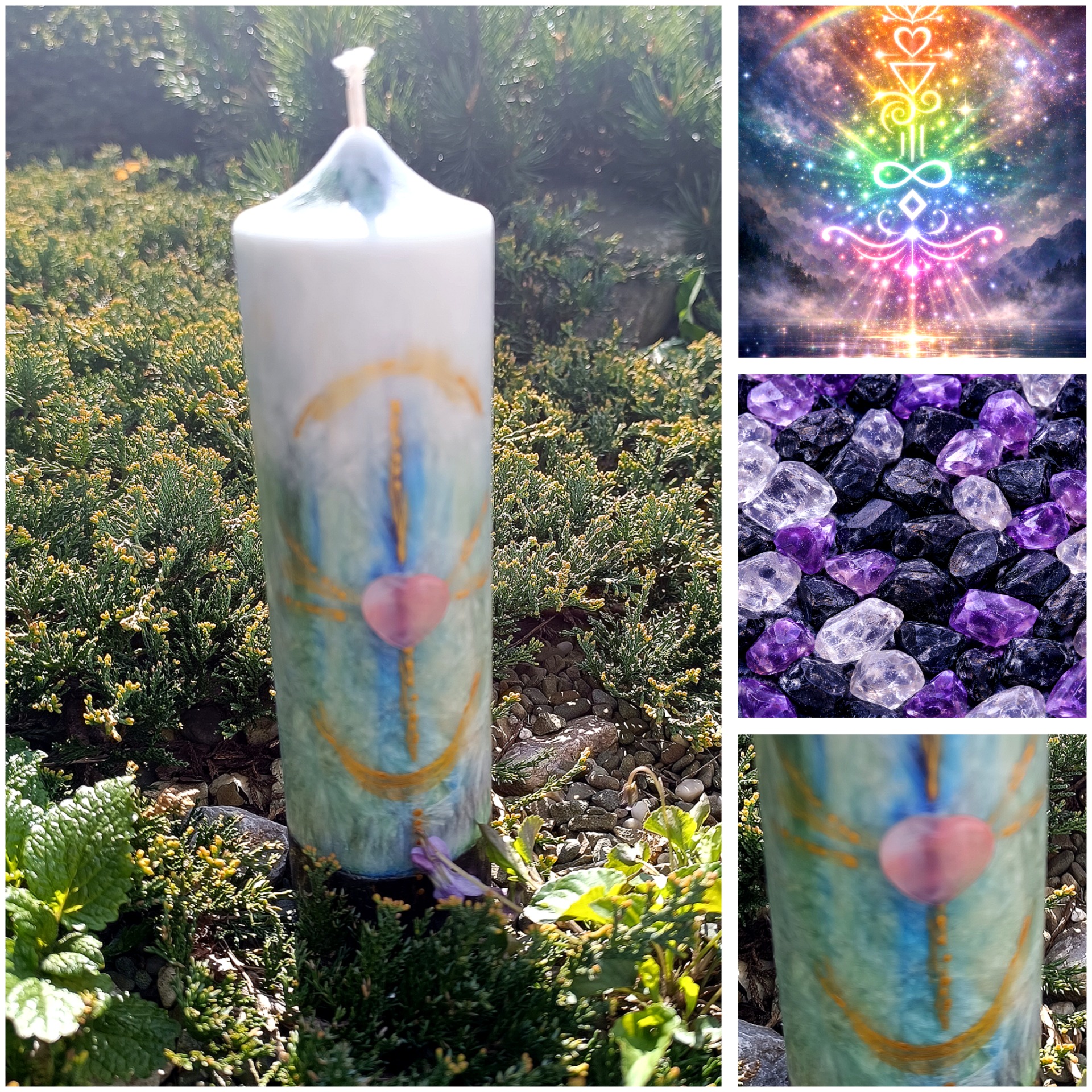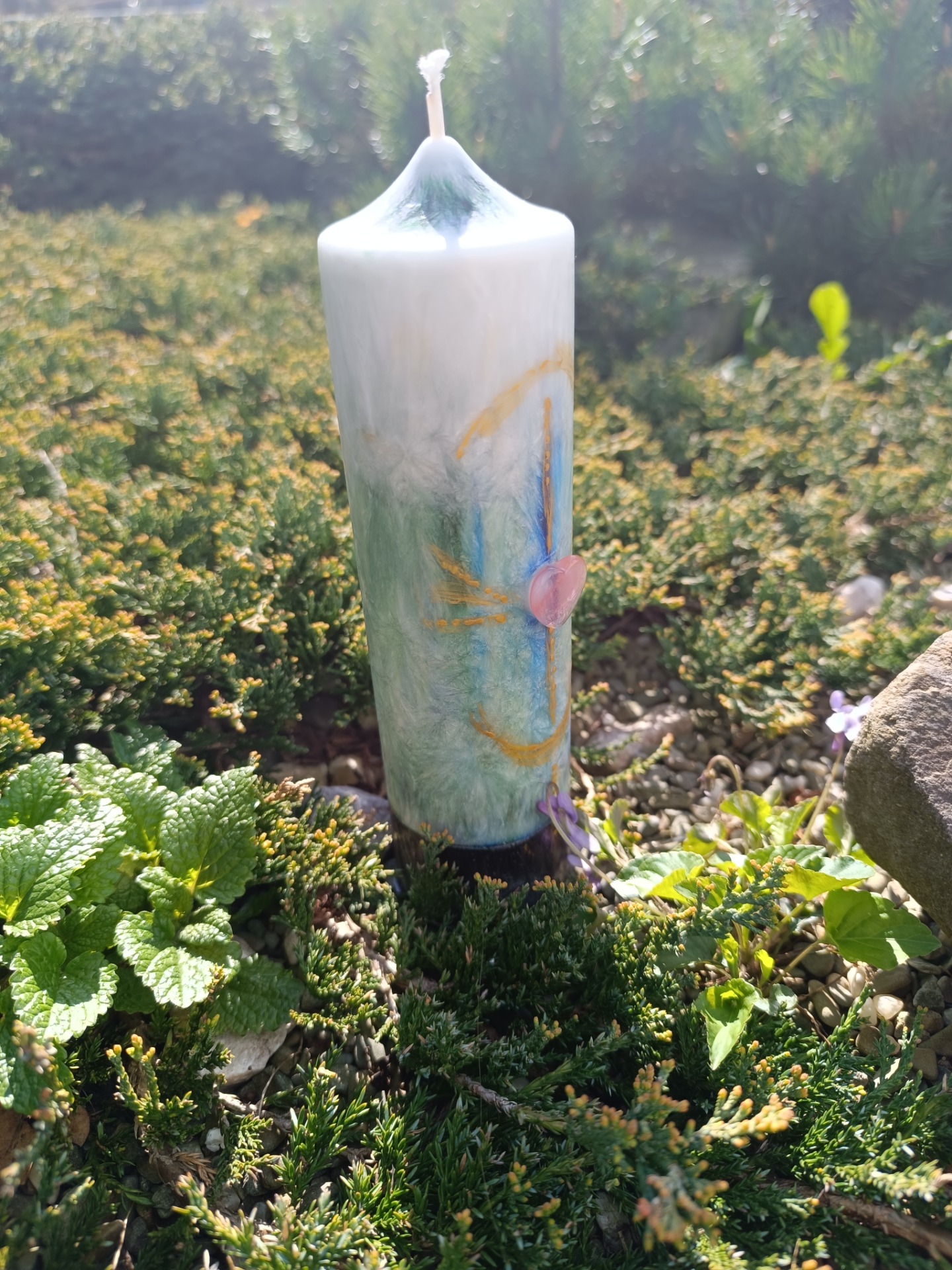 Osobní rovina se propisuje přes minerálové srdce na míru a přes samotné vybarvení svíce.