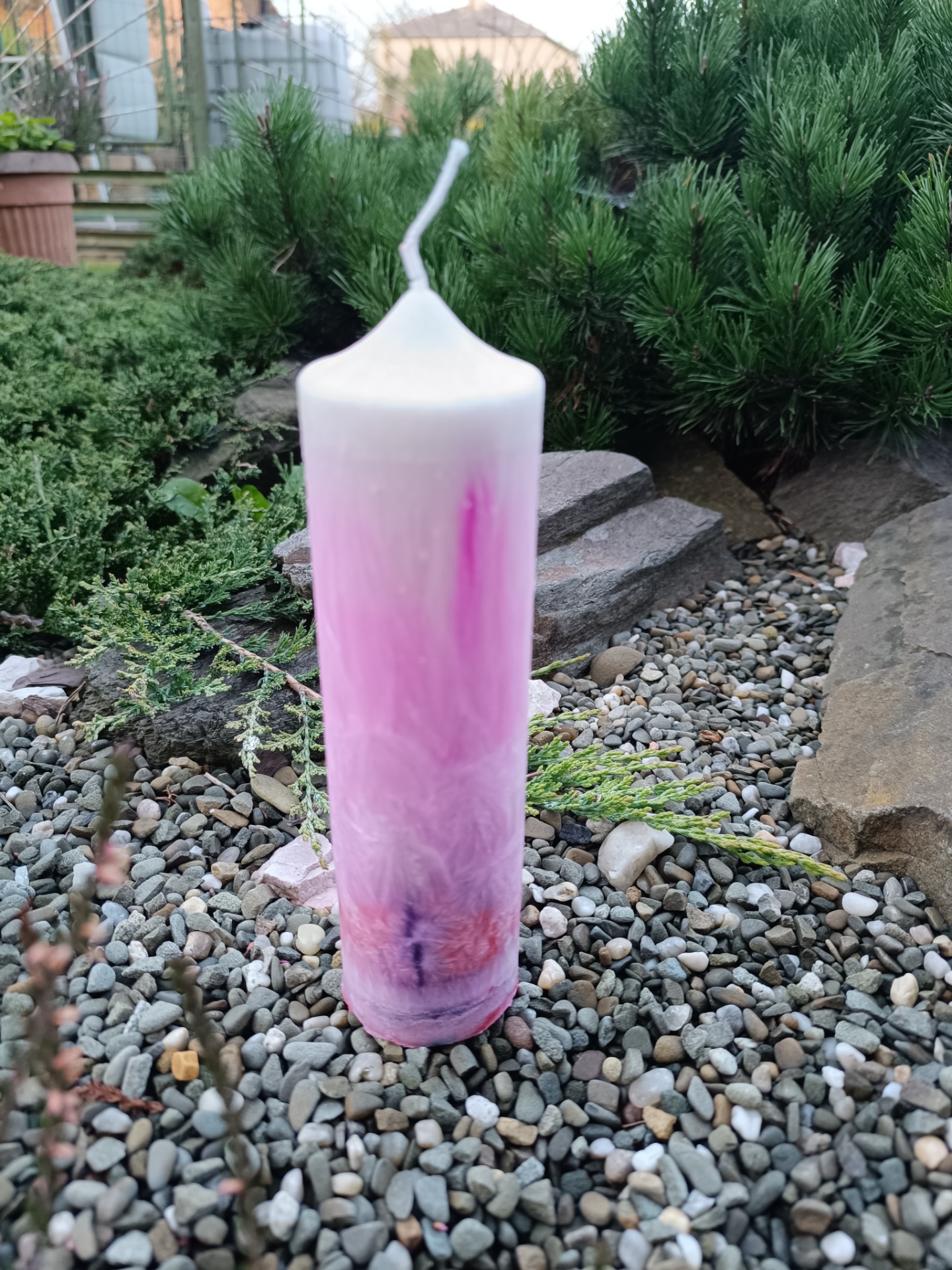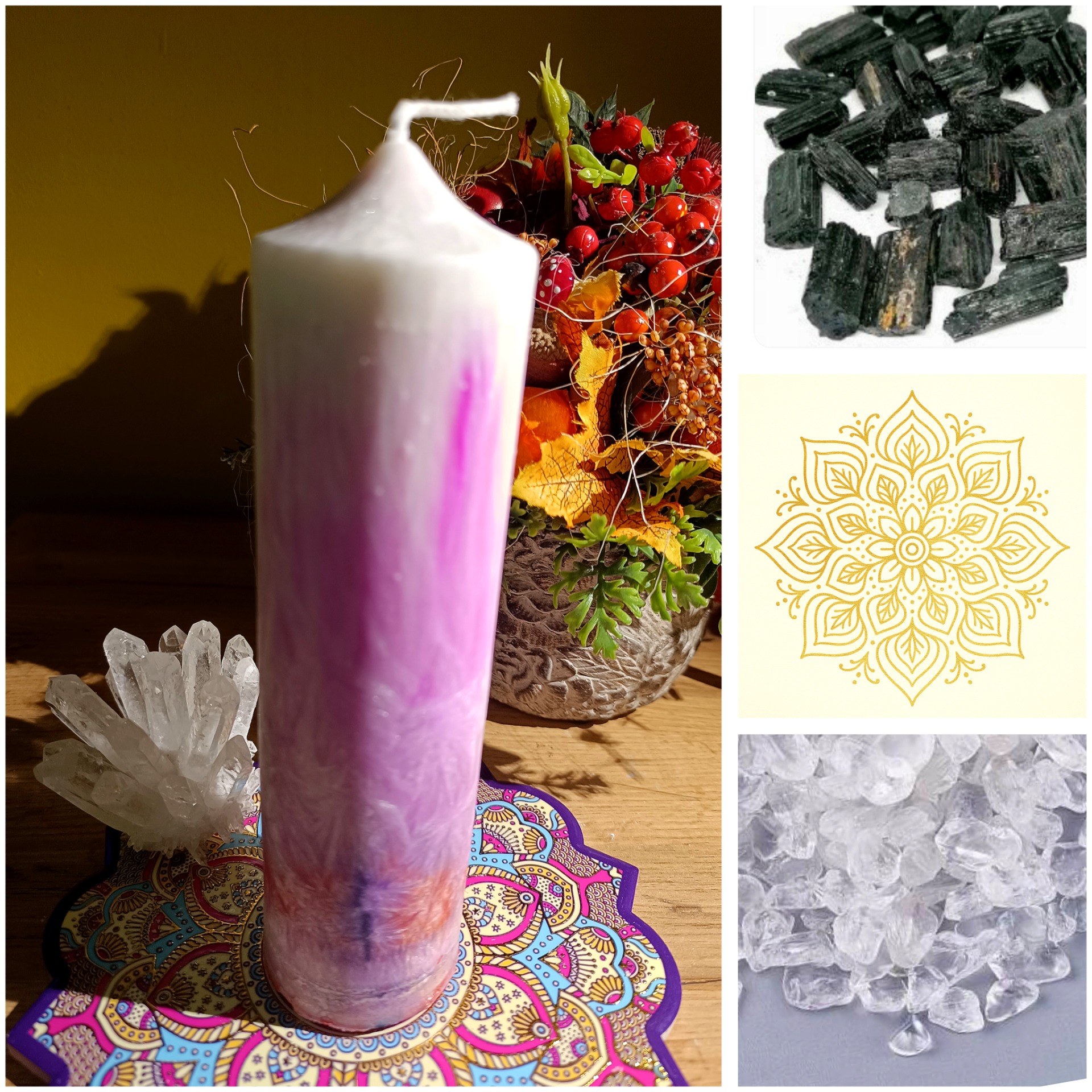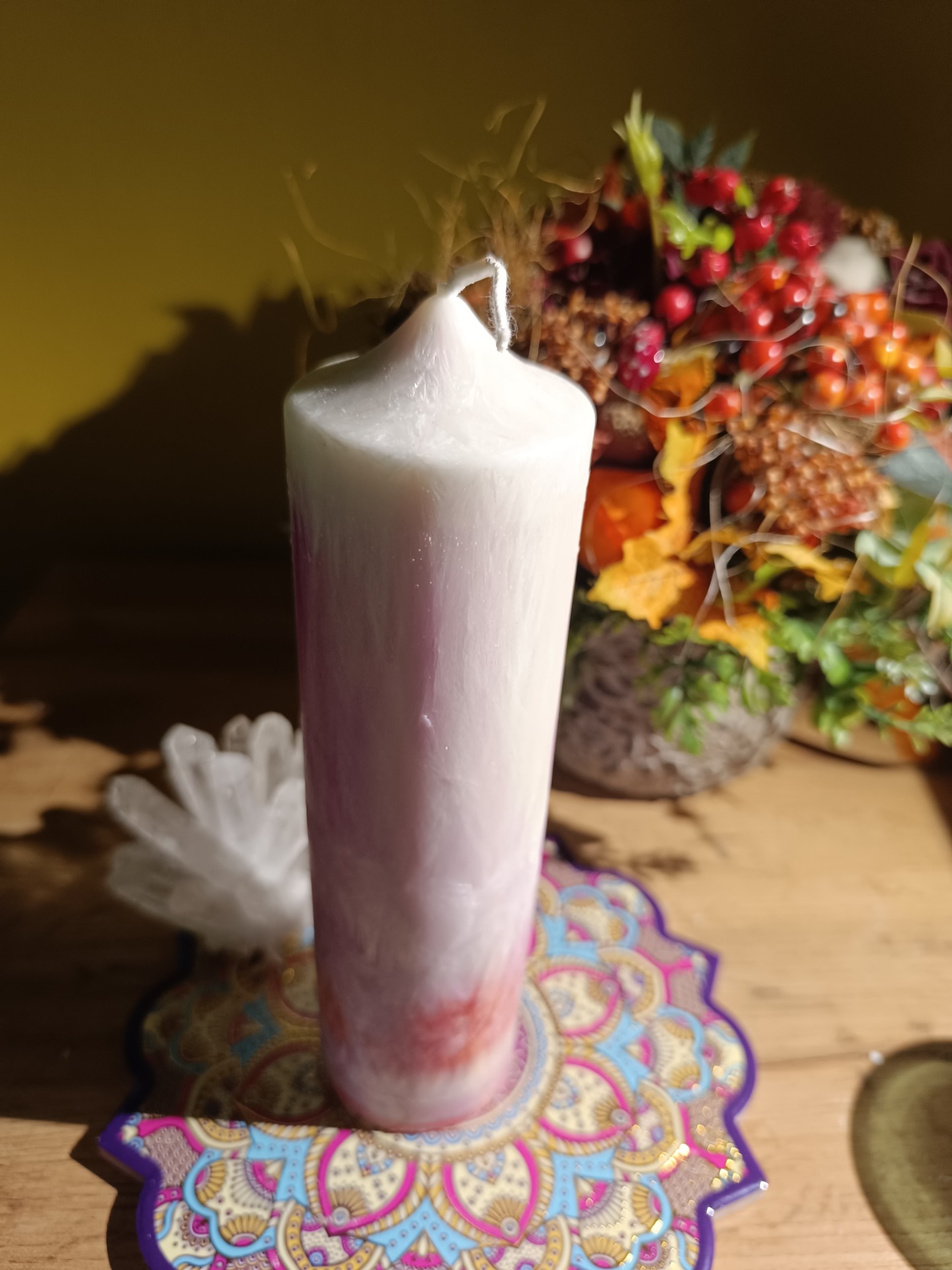 Tato ručně vyrobená svíce propojuje jemnost andělských energií s ohněm vnitřní síly.