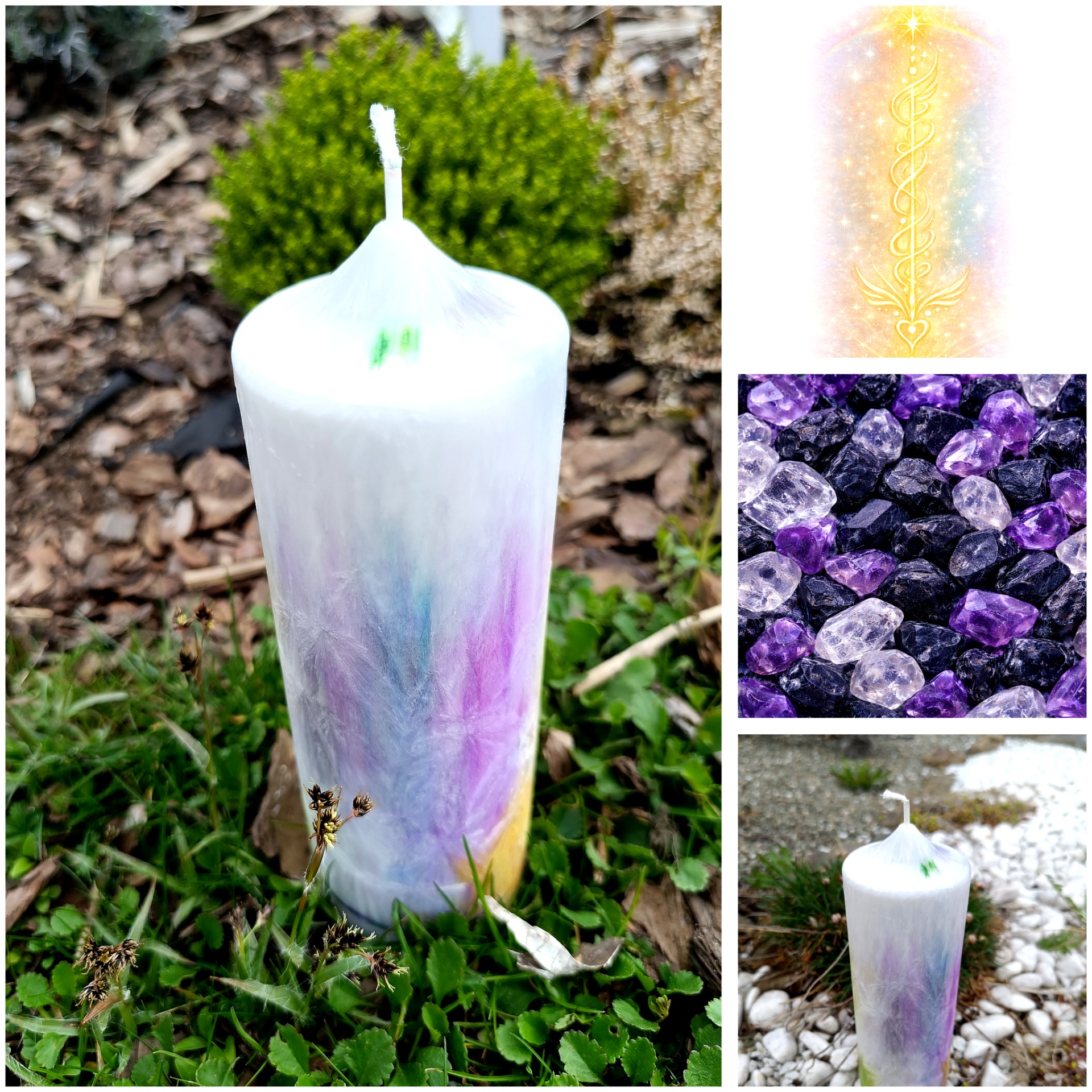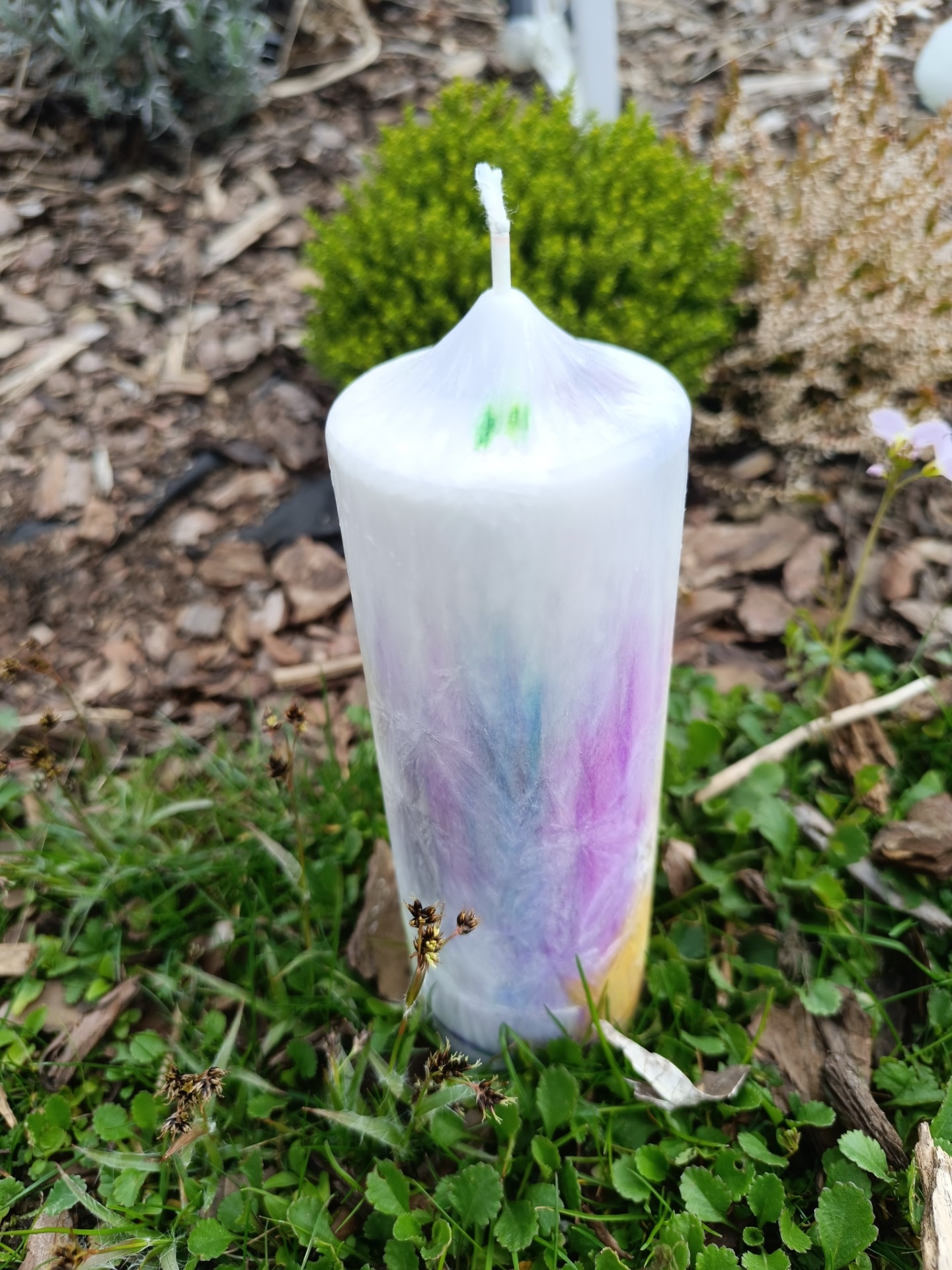Tato svíce vzniká jako duhová svíce na míru – v jemnějším, světelnějším pojetí, které podporuje uvolnění tlaku, úlevu a návrat do lehkosti. Je tvořena na míru podle data narození a nese energii uvolnění, úlevy a otevření nové lehčí cesty.