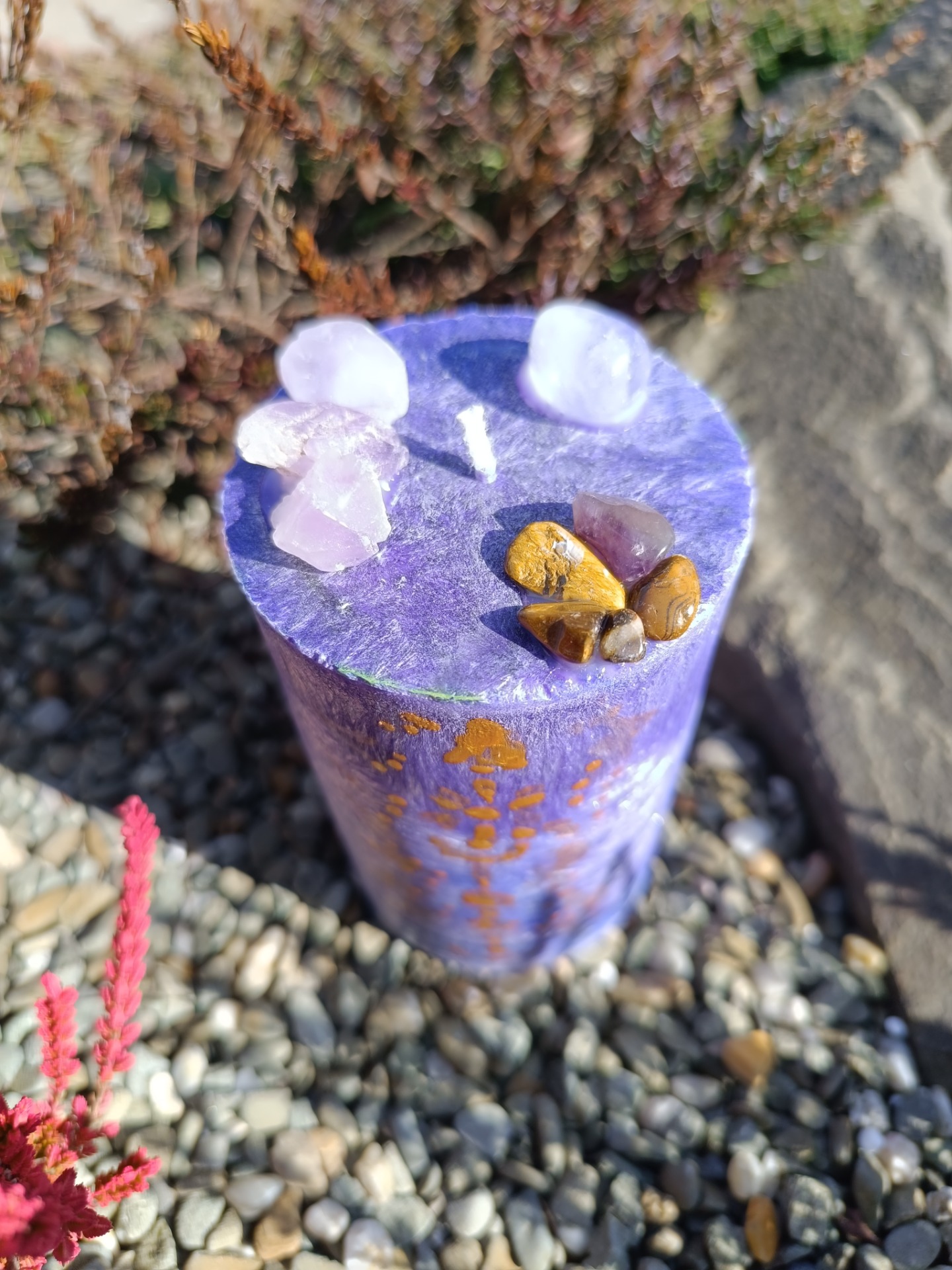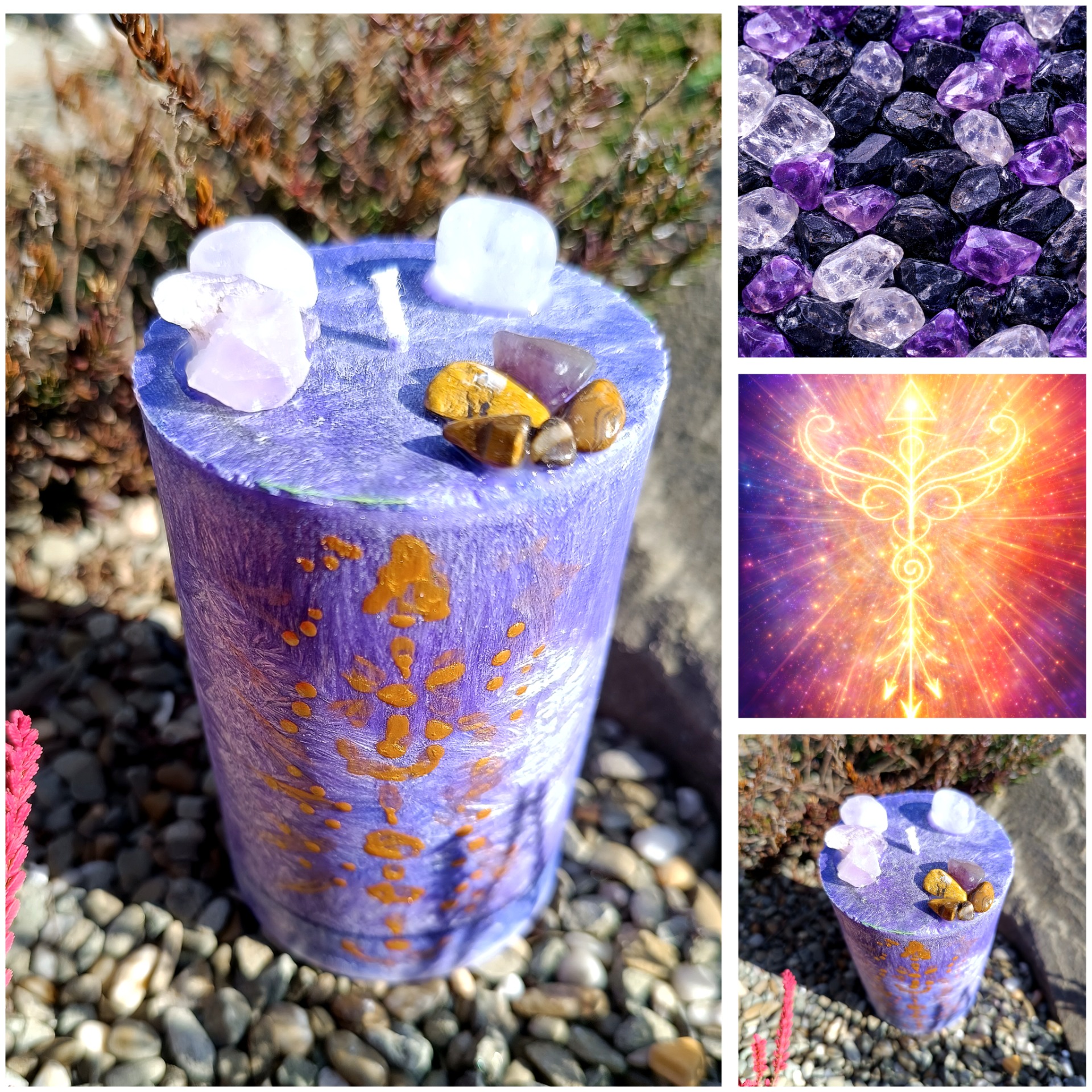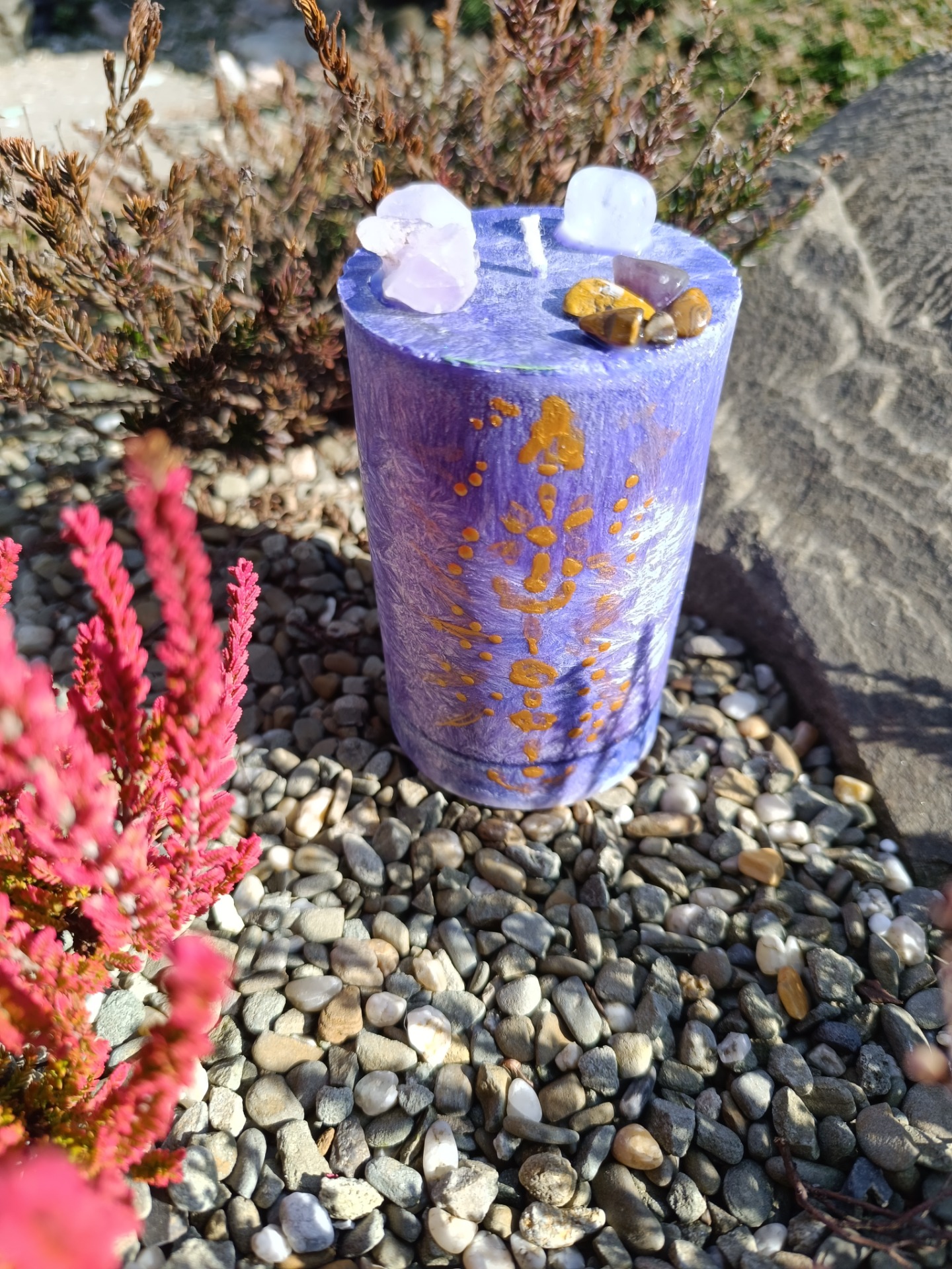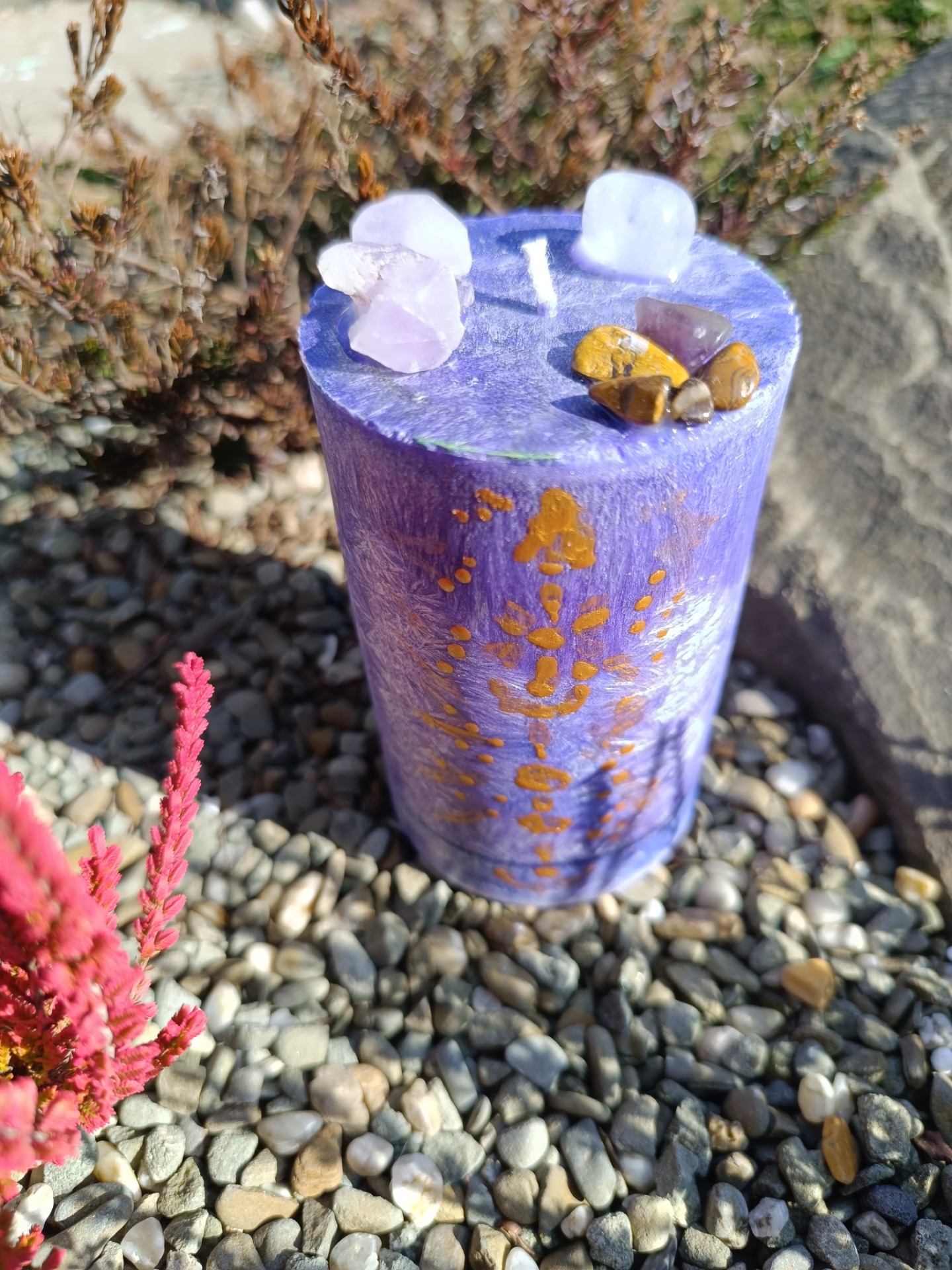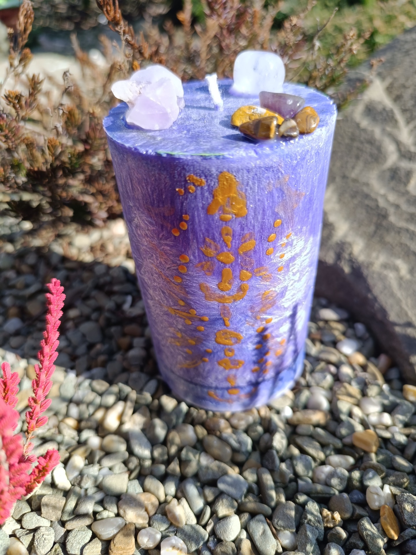 Šungit (uvnitř svíce) – silná ochrana a uzemnění.
