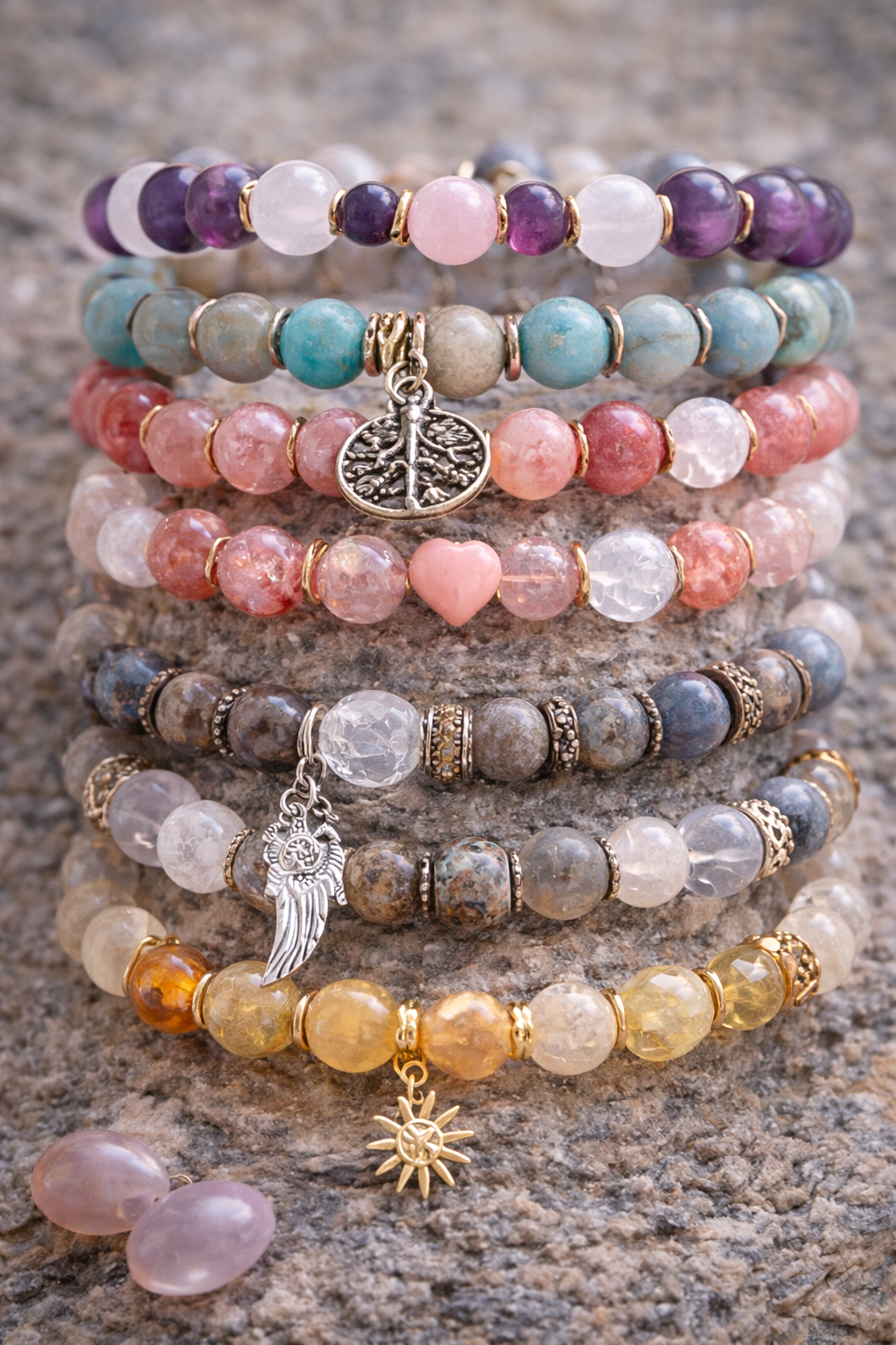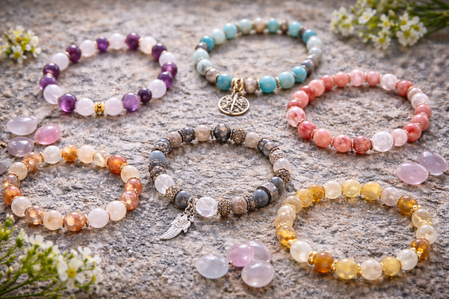 Každý kámen nese svůj význam a společně vytvářejí harmonii, která může podpořit tvou energii v každodenním životě.