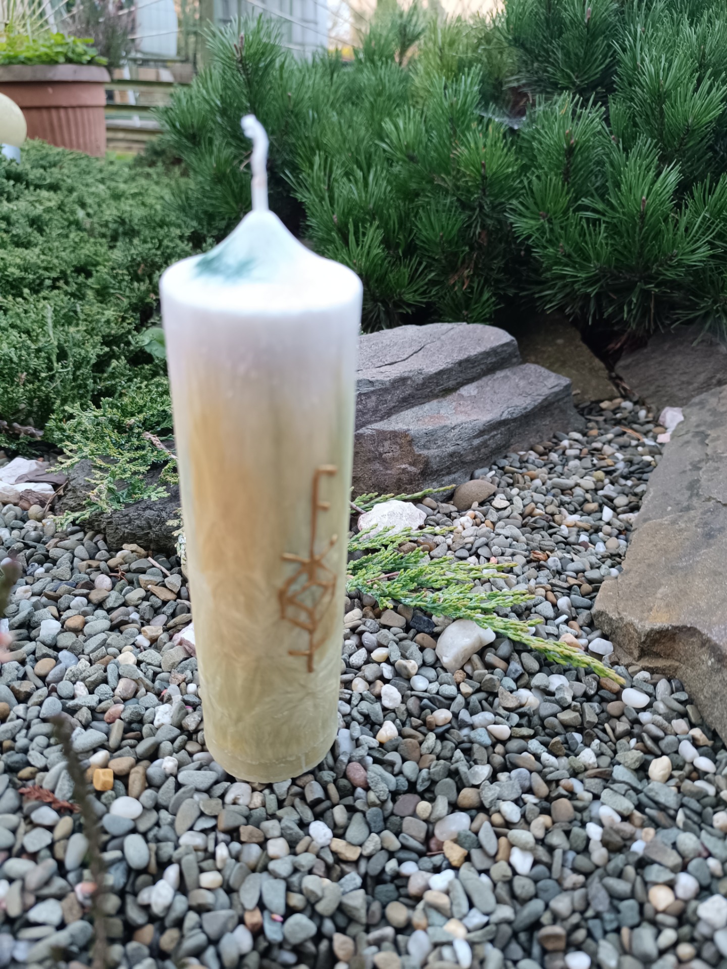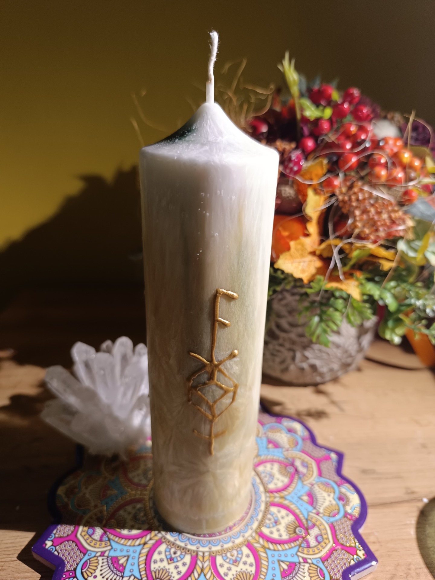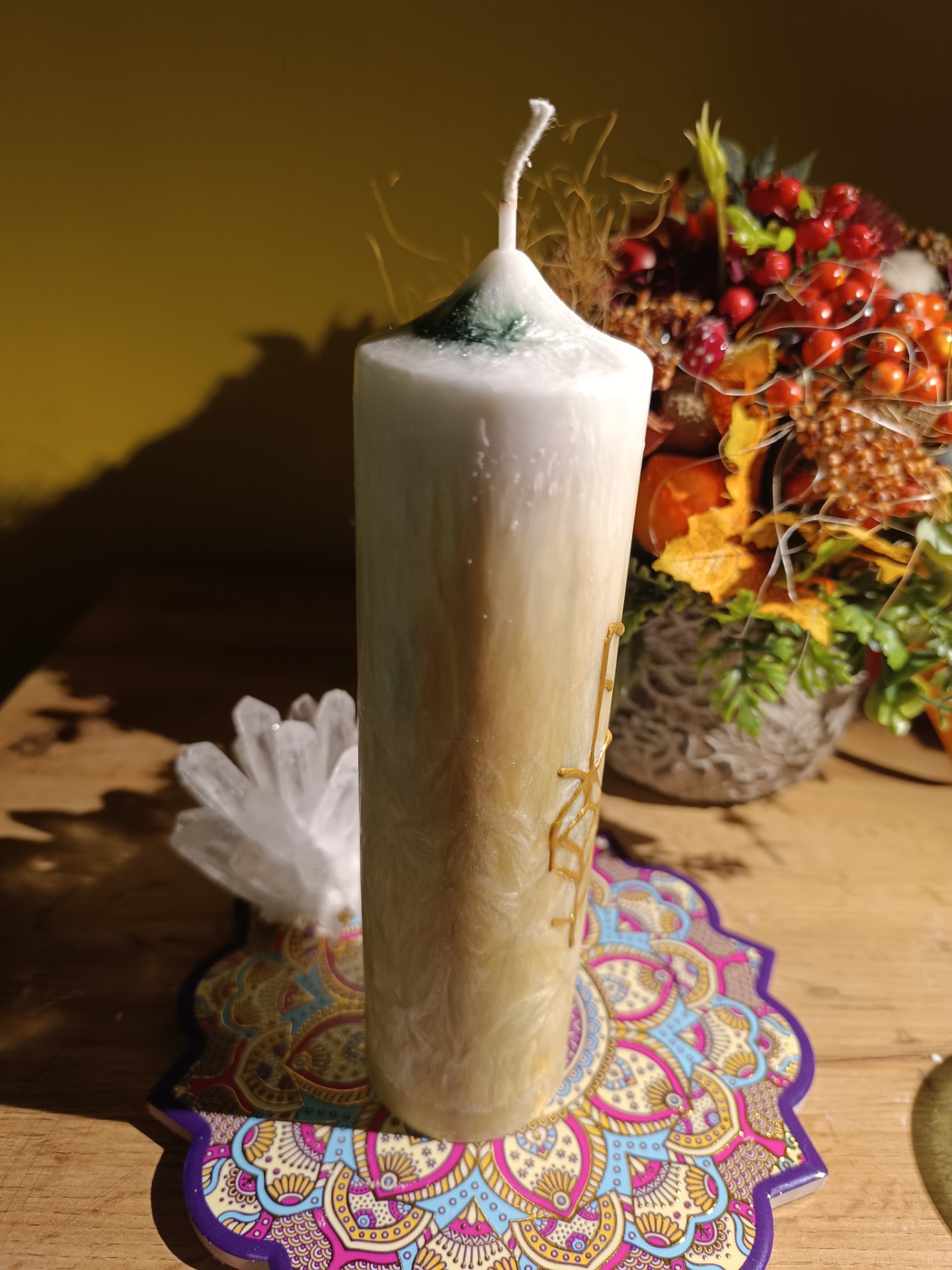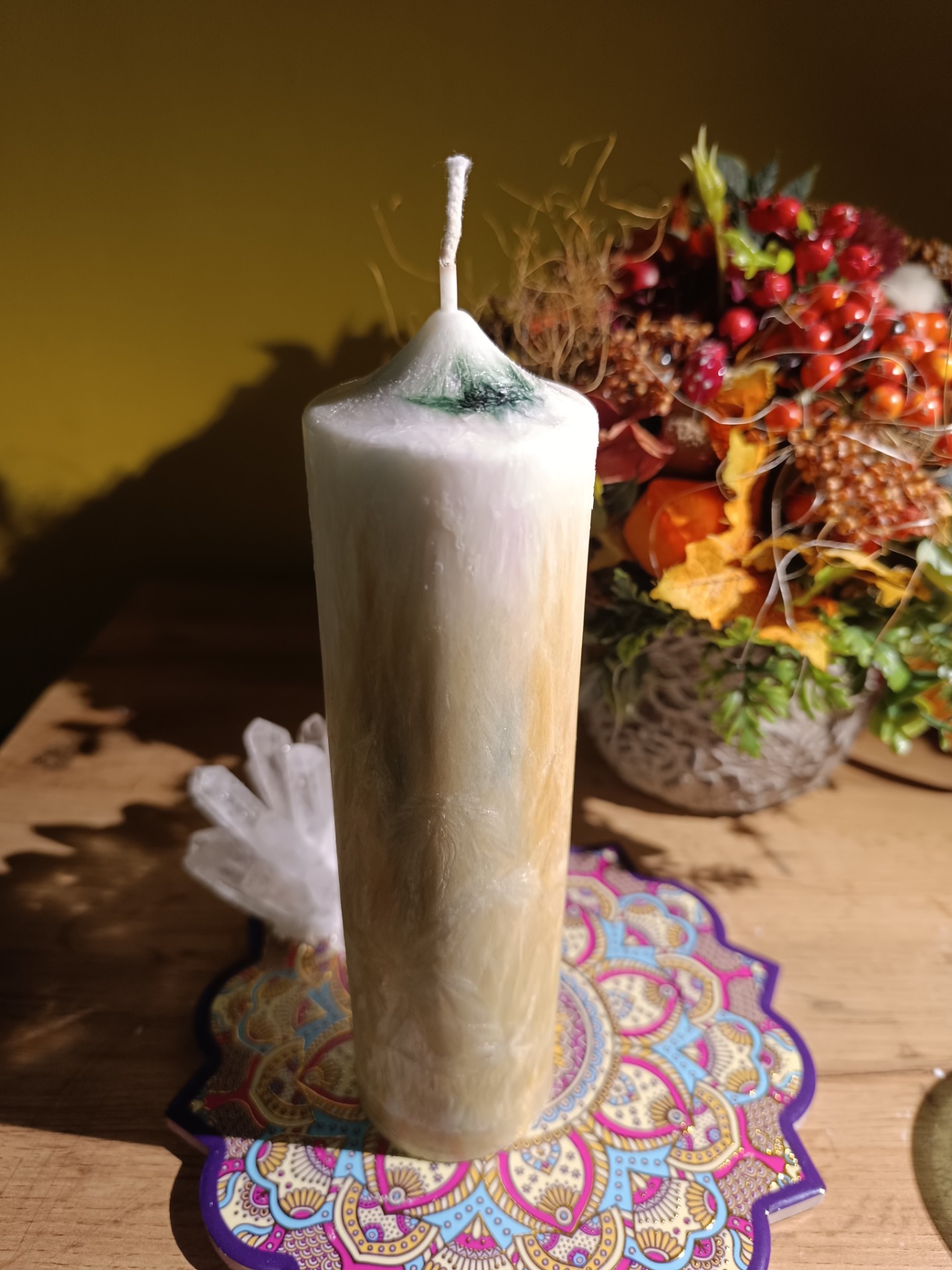 Tato svíce nese sílu přírody, zemitou stabilitu i zářivý proud hojnosti.