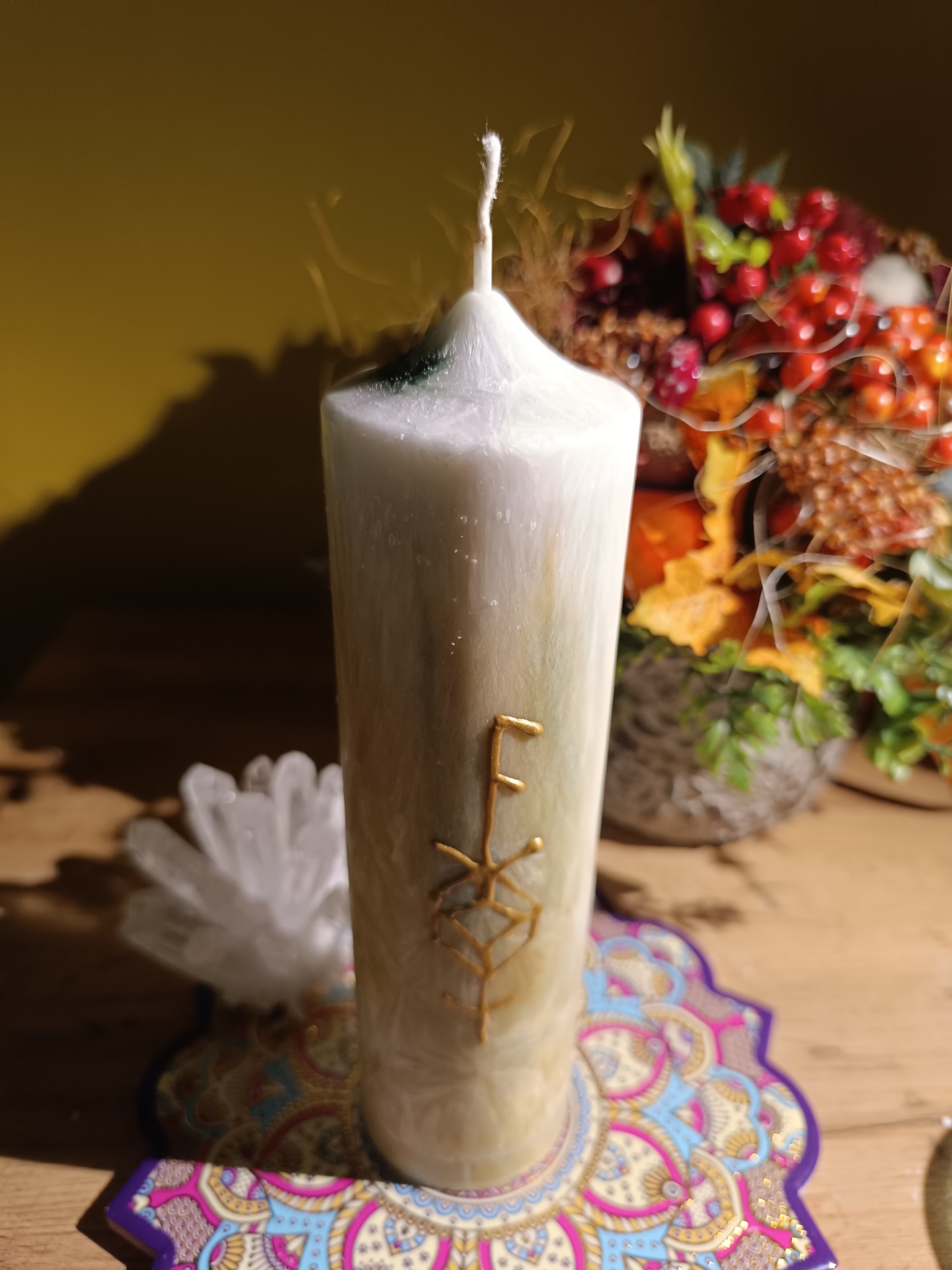 Je zasvěcená runové pečeti Fehu – Jera – Ingwaz, která otevírá cestu finančním příležitostem, pomáhá růstu a ukotvení všeho, co vytváříš.