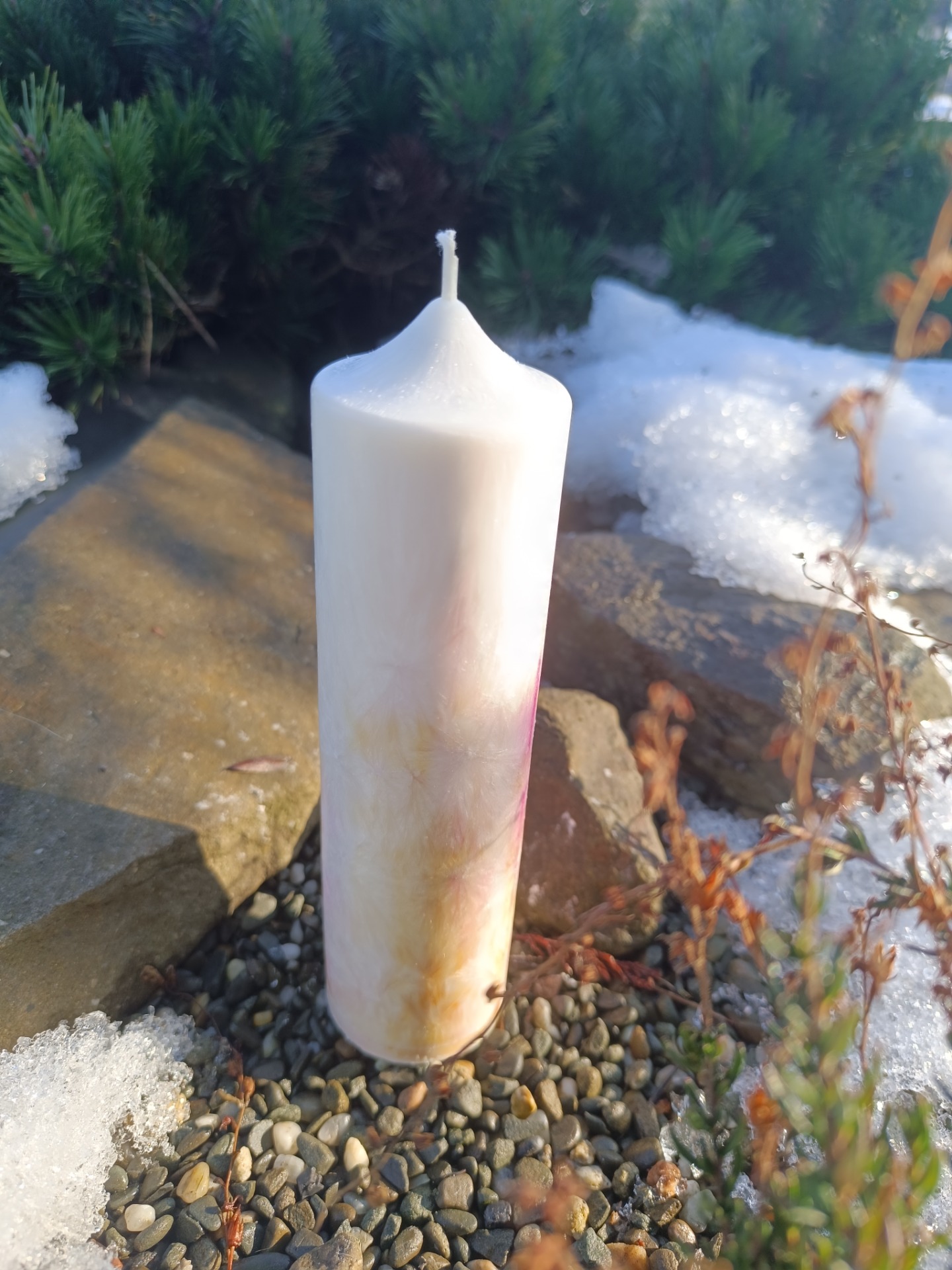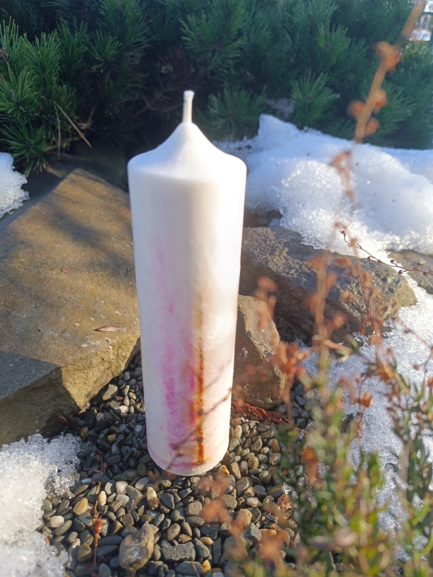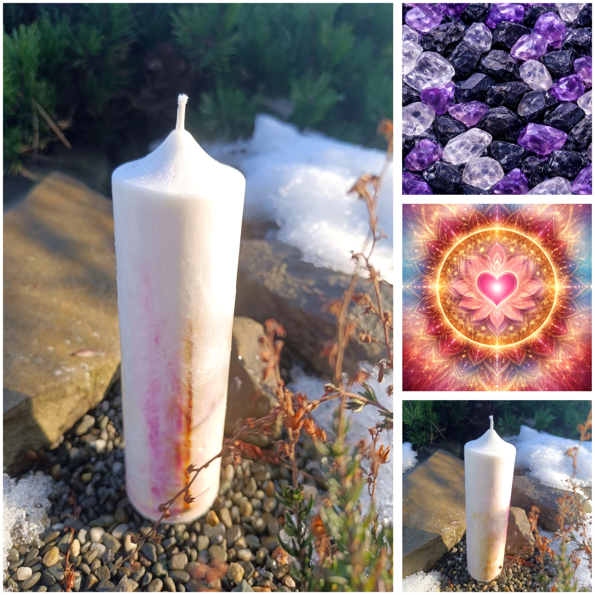 Tato ručně tvořená svíce vzniká na míru podle data narození a nese téma návratu k vlastní hodnotě, klidu a bezpodmínečné lásce. Pomáhá uvolnit tlak výkonu, strach z nedostatku a znovu propojit srdce s pocitem bezpečí v hmotě.