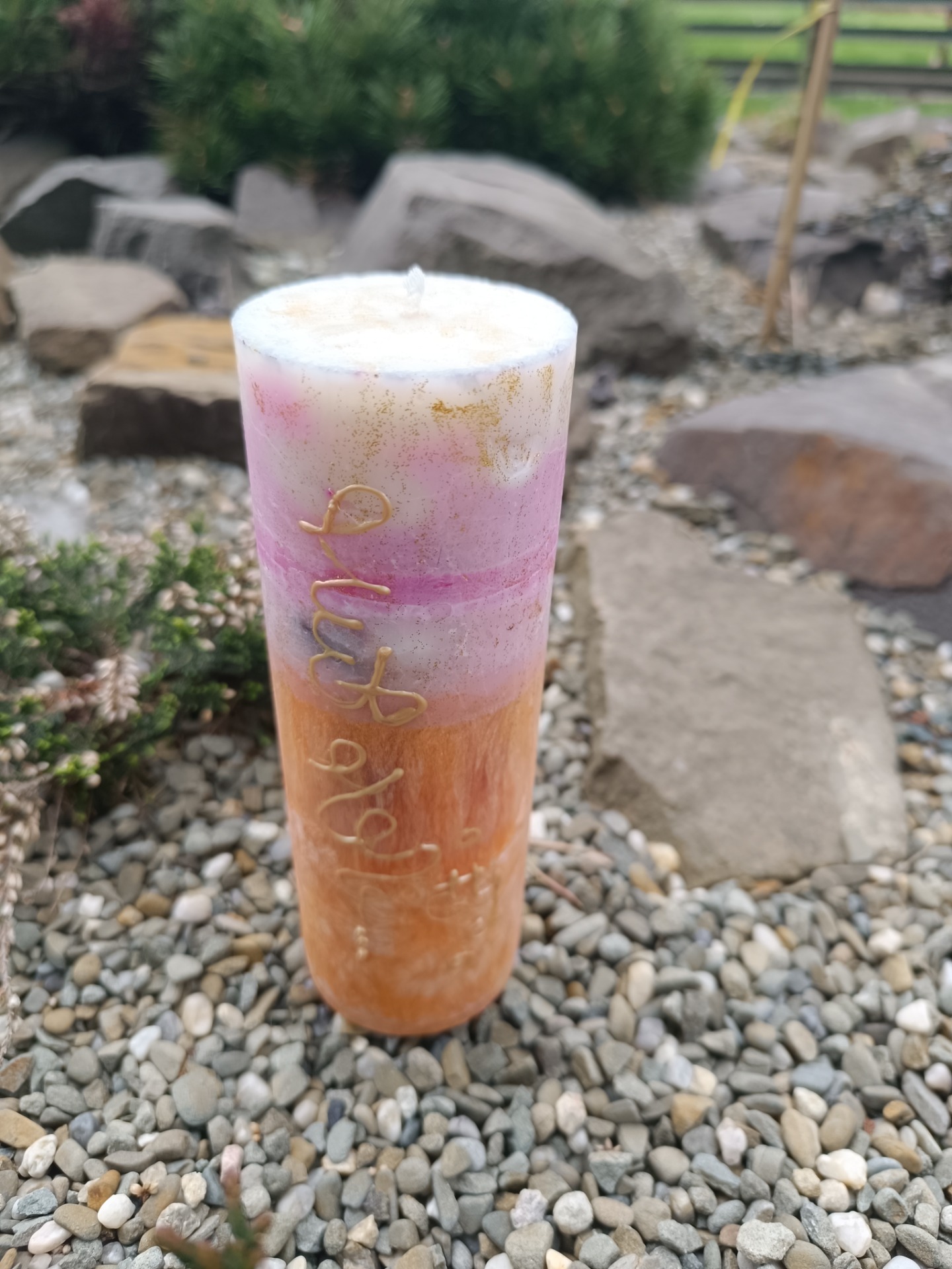 SVÍCE JE ZDOBENA ZLATÝM TŘPYTEM KTERÁ PŘITAHUJE NOVOU ENERGII A BLOKUJE VŠE NEGATIVNÍ. SVÍCE HOŘÍ PODLE TOHO JAK ZPRACOVÁVÁ DANÉ TÉMA TVOJE DUŠE. VE SVÍCÍ SE NACHÁZÍ ČISTÁ ENERGIE ZE ZDROJE.