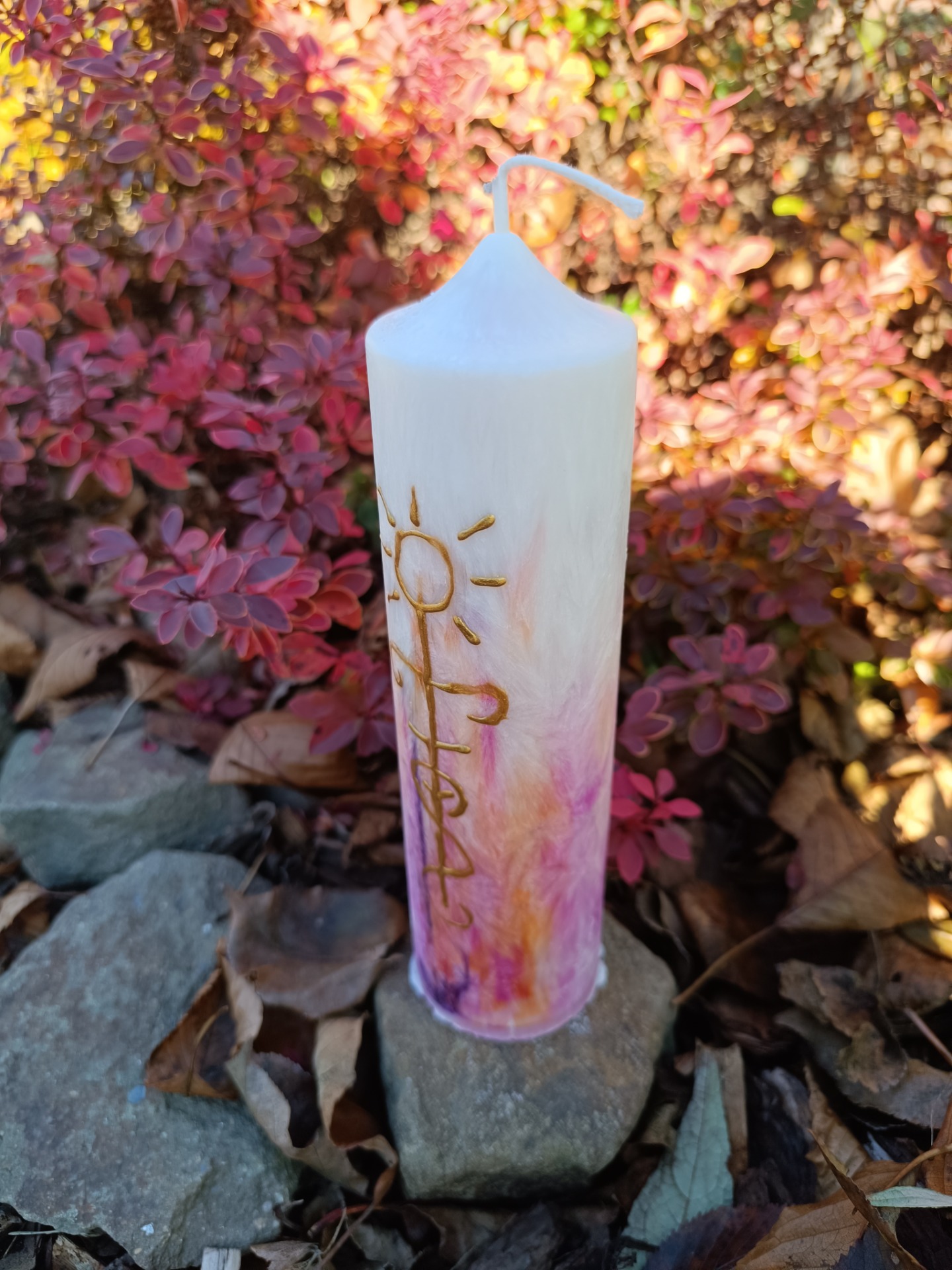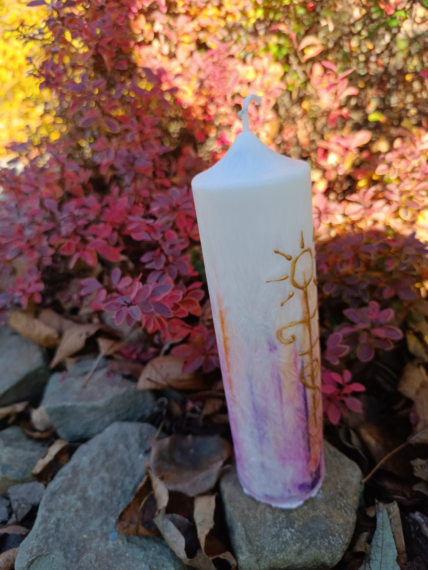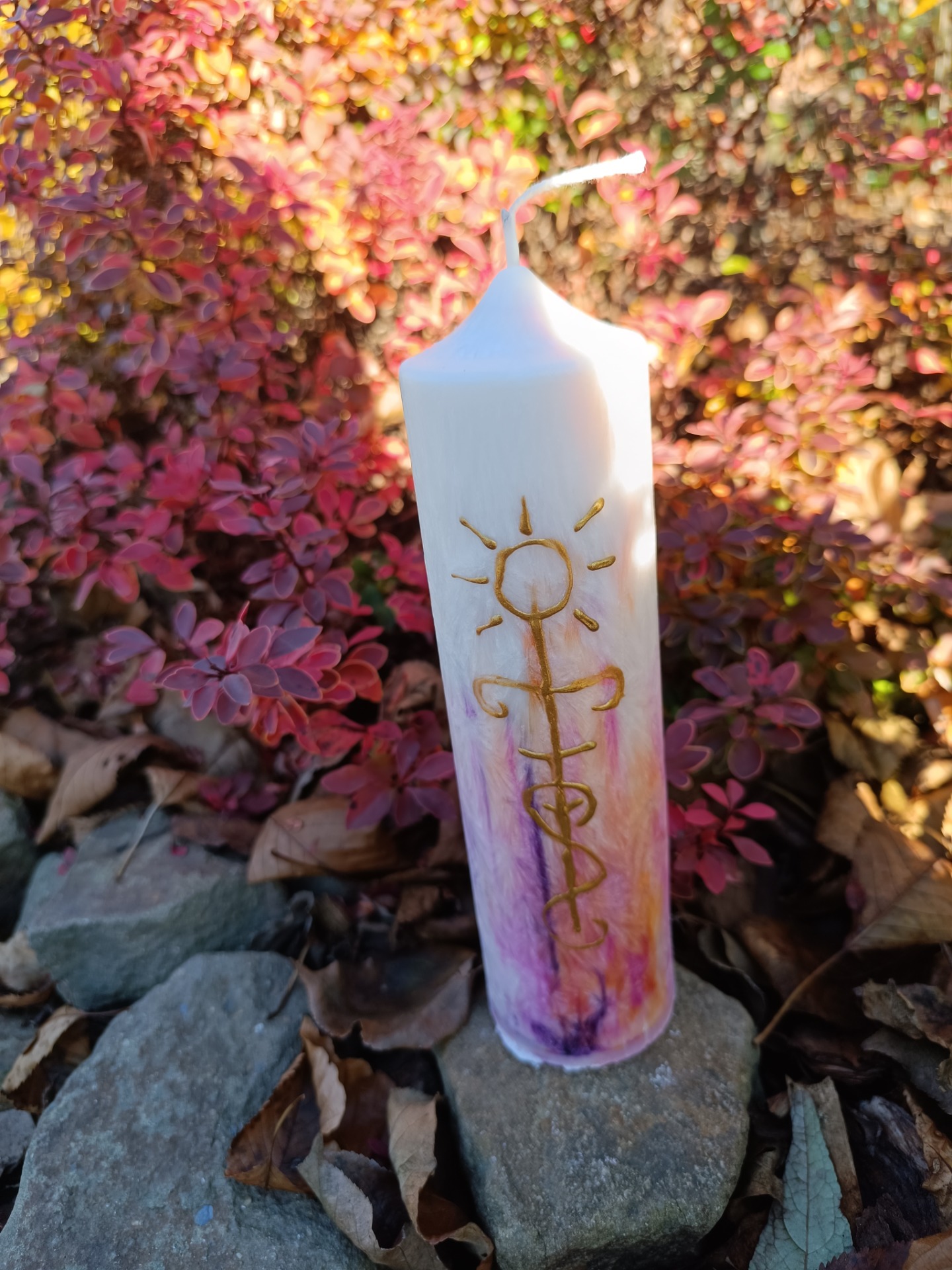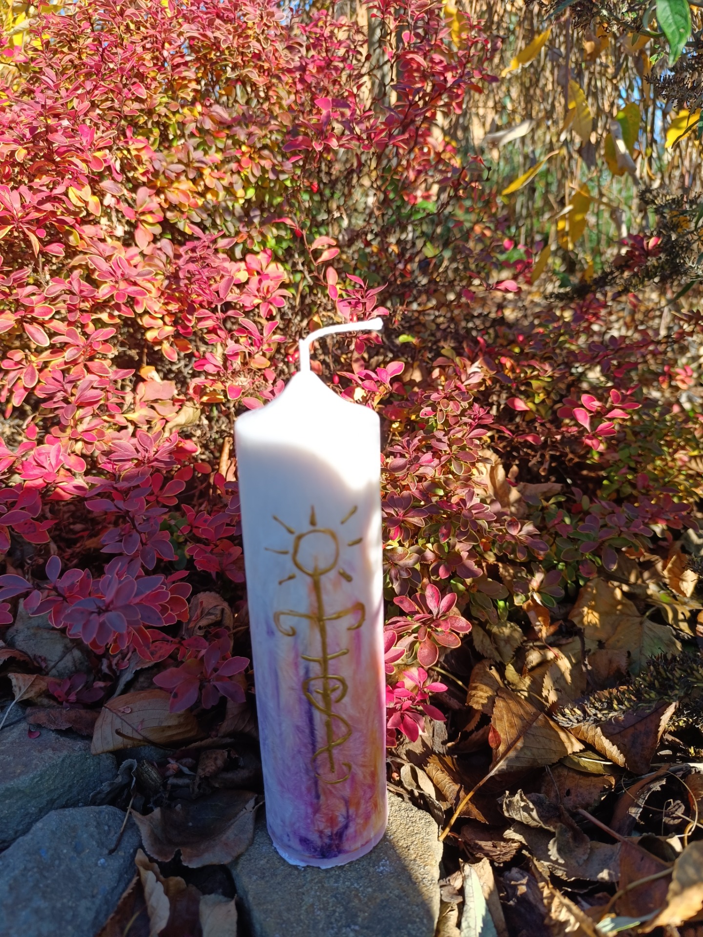 Tato svíce nese energii vnitřního klidu, ochrany a světla, které sjednocuje nebe i zemi.