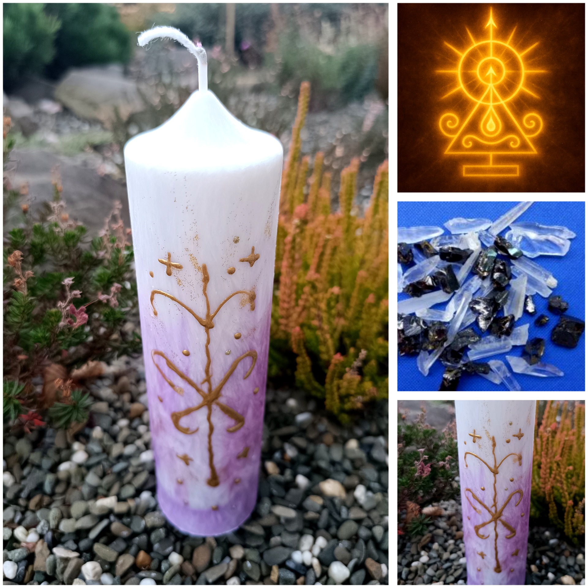 Tato jedinečná svíce je víc než jen světlo – je to energetický otisk tvé duše, který tě spojuje s tvou vnitřní silou, pravdou a posláním.