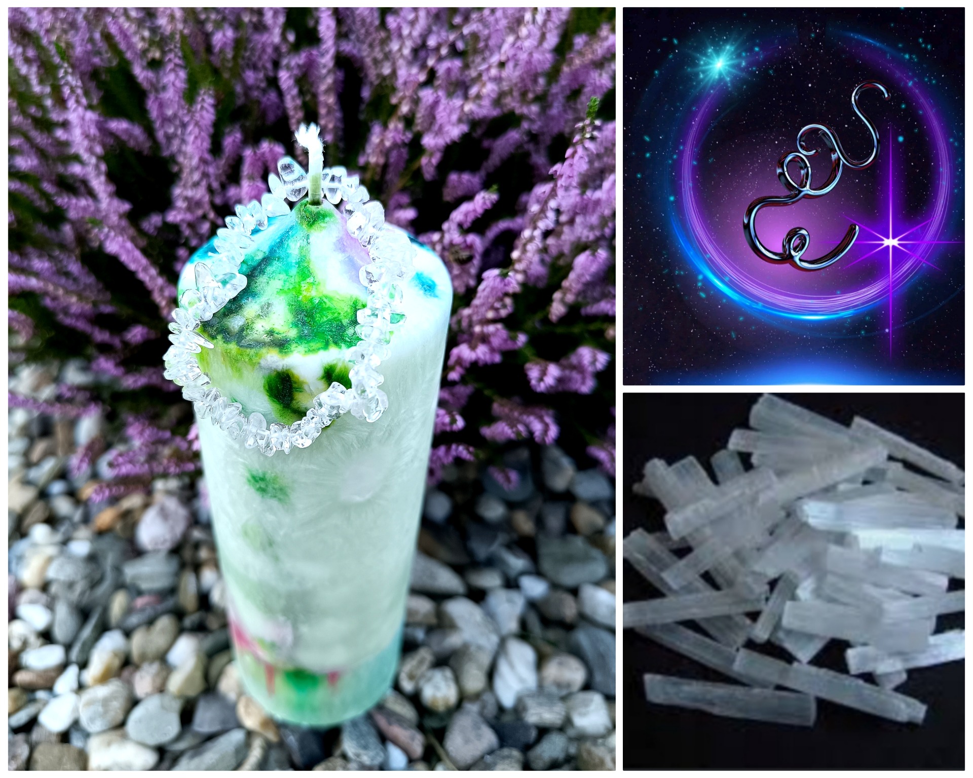 PLAMÍNEK PRO SPÁLENÍ VŠECH NEGATIVNÍCH ENERIÍCH VE VVAŠEM ŽIVOTĚ I DOMOVĚ. KOMPLETNÍ OČISTA PRO VÁŠ ŽIVOT. PLAMÍNEK PŘINÁŠÍ DO ŽIVOTA A DOMOVA MÍR, KLID A OCHRANU. PŘITAHUJE PROSPERITU. UVNITŘ SVÍCE SE UKRÝVÁ MINERÁLN SELENIT.