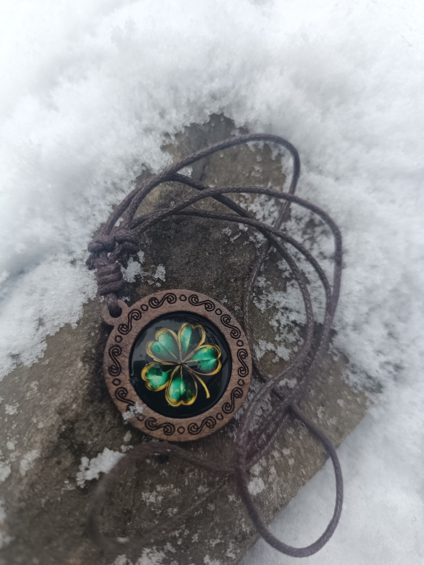 Tento talisman nese symbol čtyřlístku – starobylého znamení štěstí, ochrany a požehnání na cestě životem.