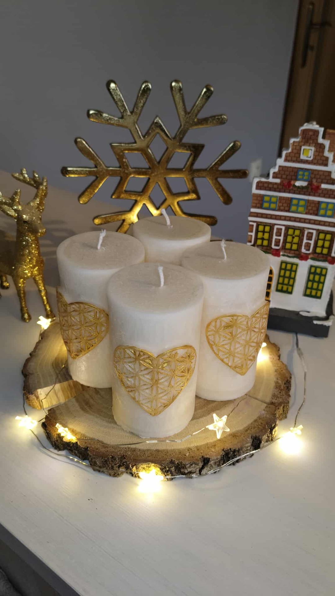 Tato jedinečná adventní sada čtyř svící přináší harmonii, ochranu a lásku do vašeho domova po celé vánoční období.